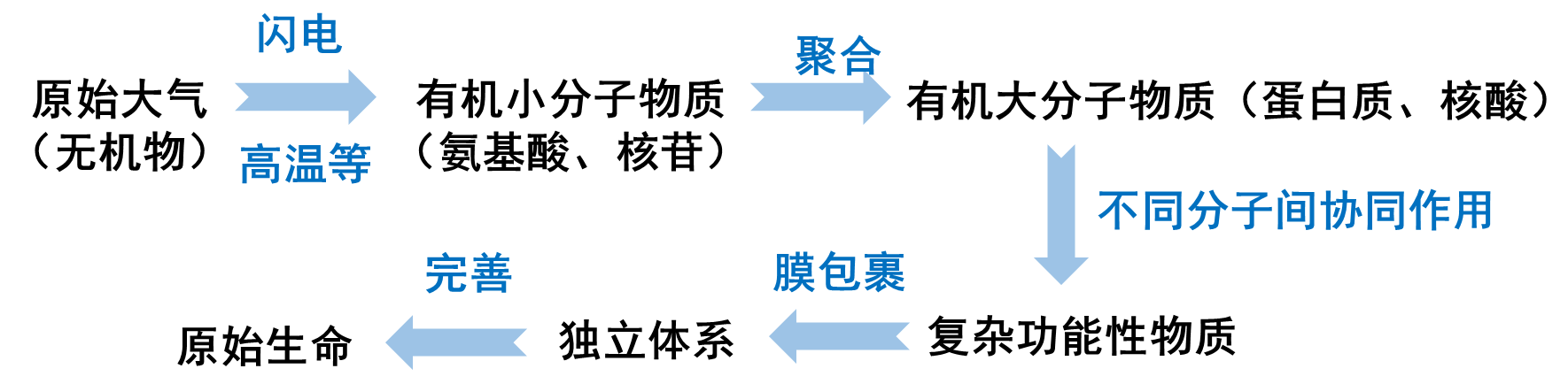 | CH4、N2和H2O | 地球大气闪电 | 氰化氢及膜结构 | [ |