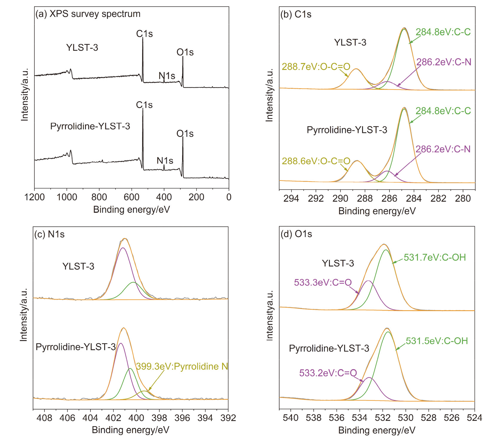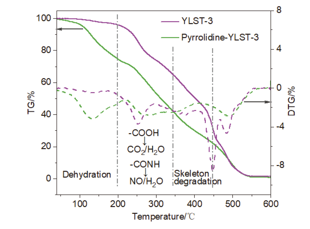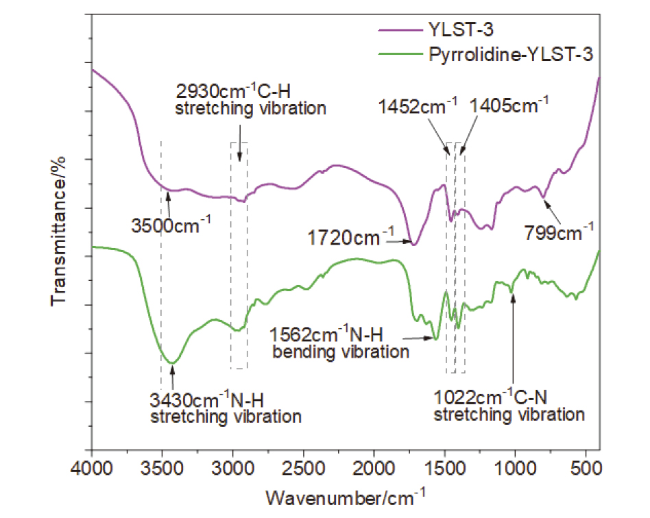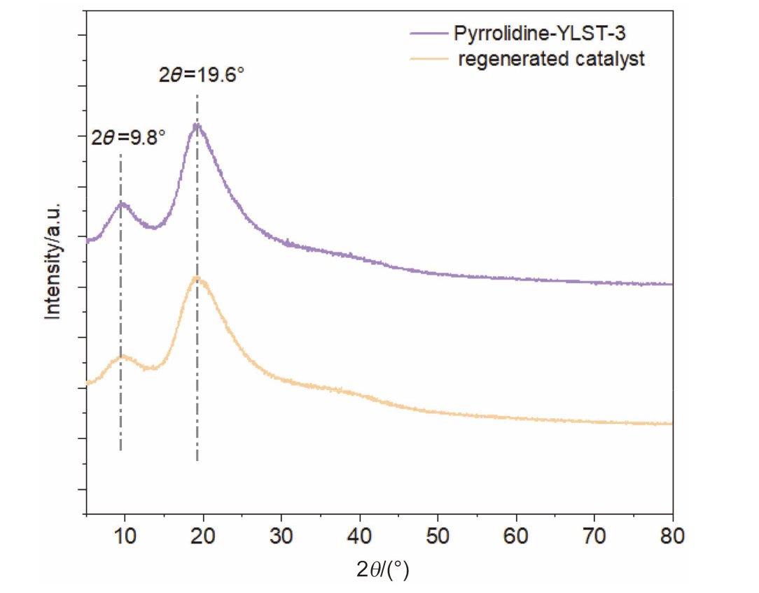 本工作以弱酸性离子交换树脂为载体, 以有机胺为修饰剂, 通过简单的酸碱中和反应制备得到了一系列负载型离子液体催化剂, 并将其应用到生物基多元酸酯的制备当中. 以2,5-呋喃二甲醛(DFF)和丙二酸二甲酯(DMM)为底物, 以活性最佳的Pyrrolidine-YLST-3为催化剂时, 生物基多元酸酯的产率可以达到99.2%. 这种制备方法极大地减少了传统氧化过程中氧气等强氧化剂的使用, 安全性更高, 对设备要求较低. 此外, 目标产物选择性较高, 副产物主要为水, 对环境更加友好, 更加符合绿色化学原则. 通过核磁共振(NMR)、红外光谱(FTIR)、X射线衍射(XRD)和X射线光电子能谱(XPS)等方法对催化剂进行了表征, 发现吡咯烷与离子交换树脂之间发生了质子转移, 形成了新的负载型离子液体. 通过对多种底物的Knoevenagel缩合反应进行研究均取得了较高的收率, 说明Pyrrolidine-YLST-3催化剂具有很强的普适性.