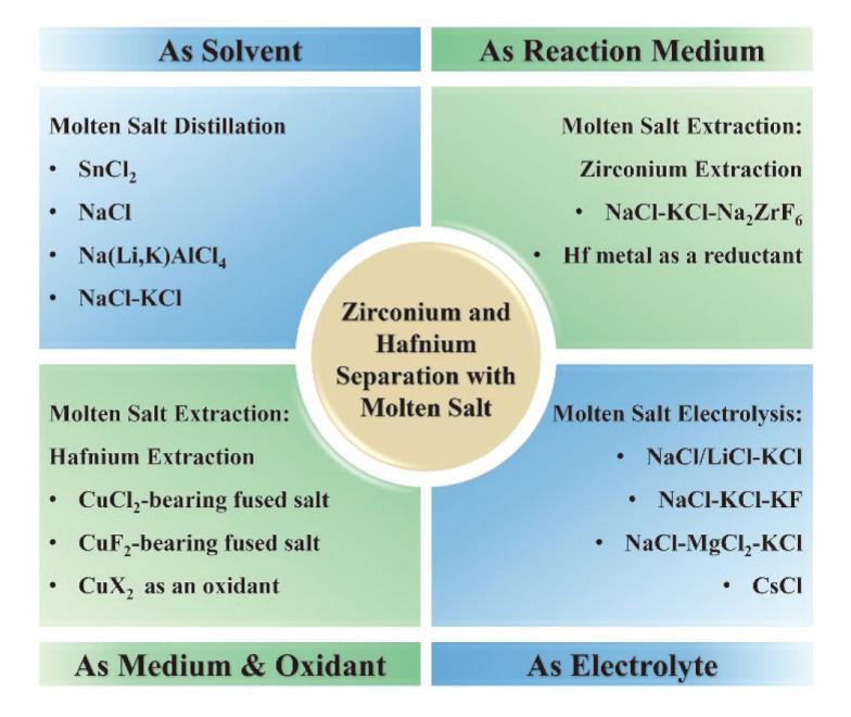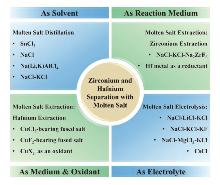 | NaCl-KCl | 657 | | Molten Salt Distillation; Molten Salt Extraction for Zr/Hf Separation; Molten Salt Electrolysis for Zr/Hf Separation; Electrowinning for Zirconium Production; USTB Process for Zirconium Production. |