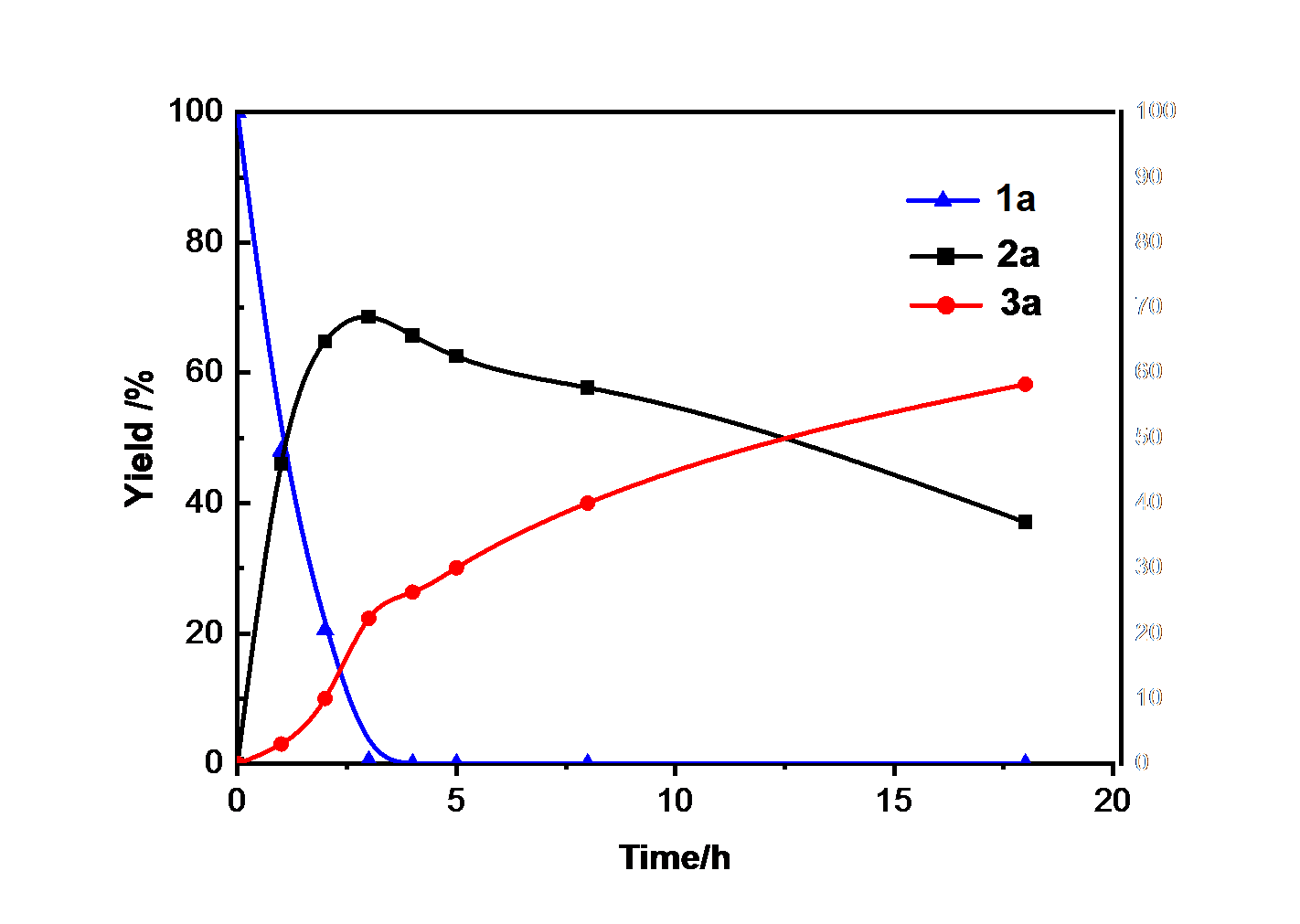 | Entry | 与标准条件的差异 | 产率b/% | 2a与3a的 物质的量比b |