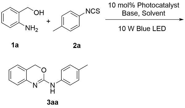3aa)的光催化合成最佳反应条件, 本研究以2-氨基苯甲醇(