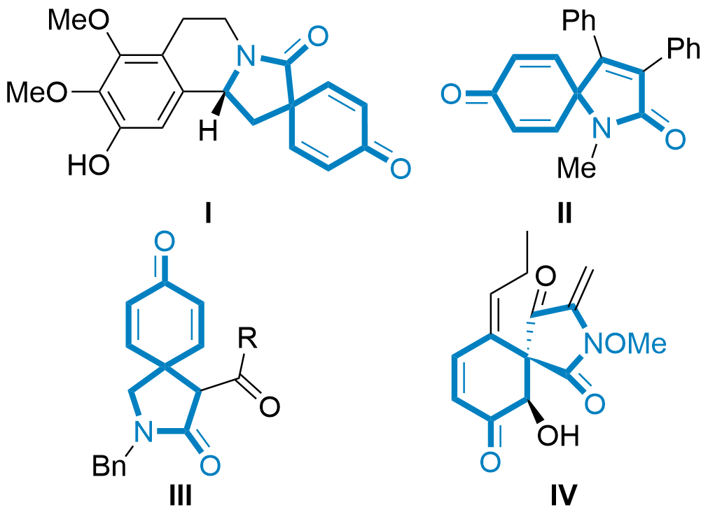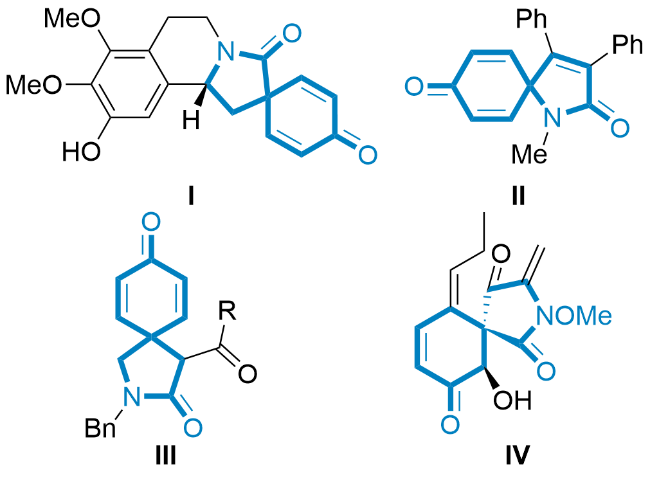 Figure 1 Selected bioactive compounds containing five-membered lactam-based spirocyclohexadiene frameworks