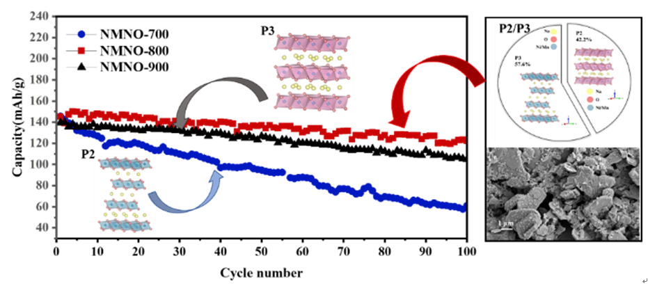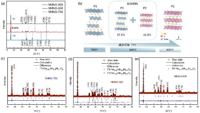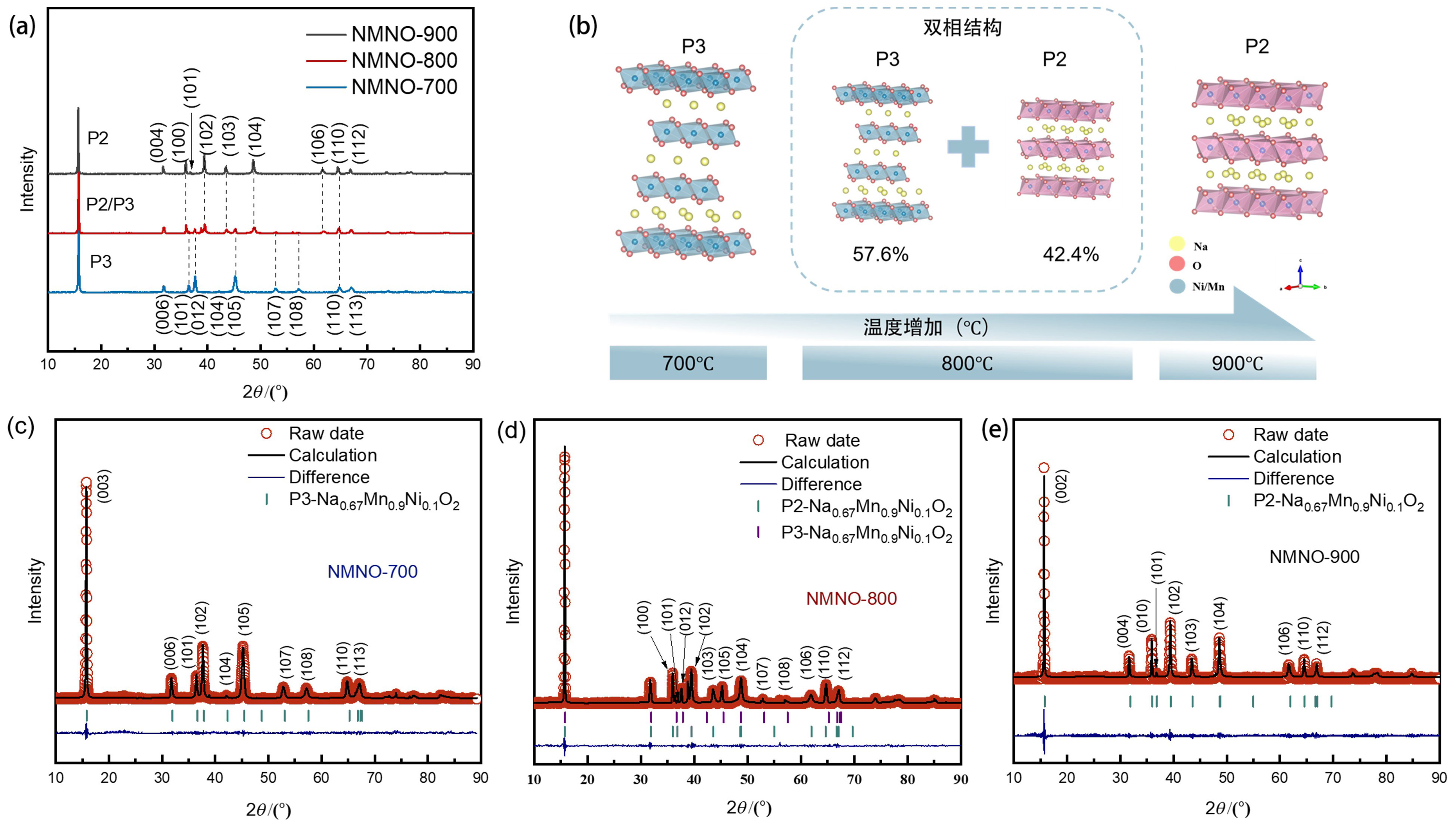 c=1.67923 nm), P2/P3双相NMNO-800 (P2相: