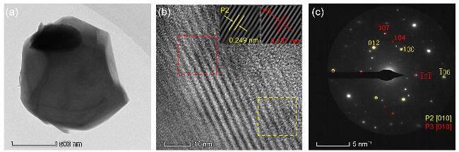 [34-35]. 因此, XRD表明改变煅烧温度可以使得其材料呈P2/P3双相.