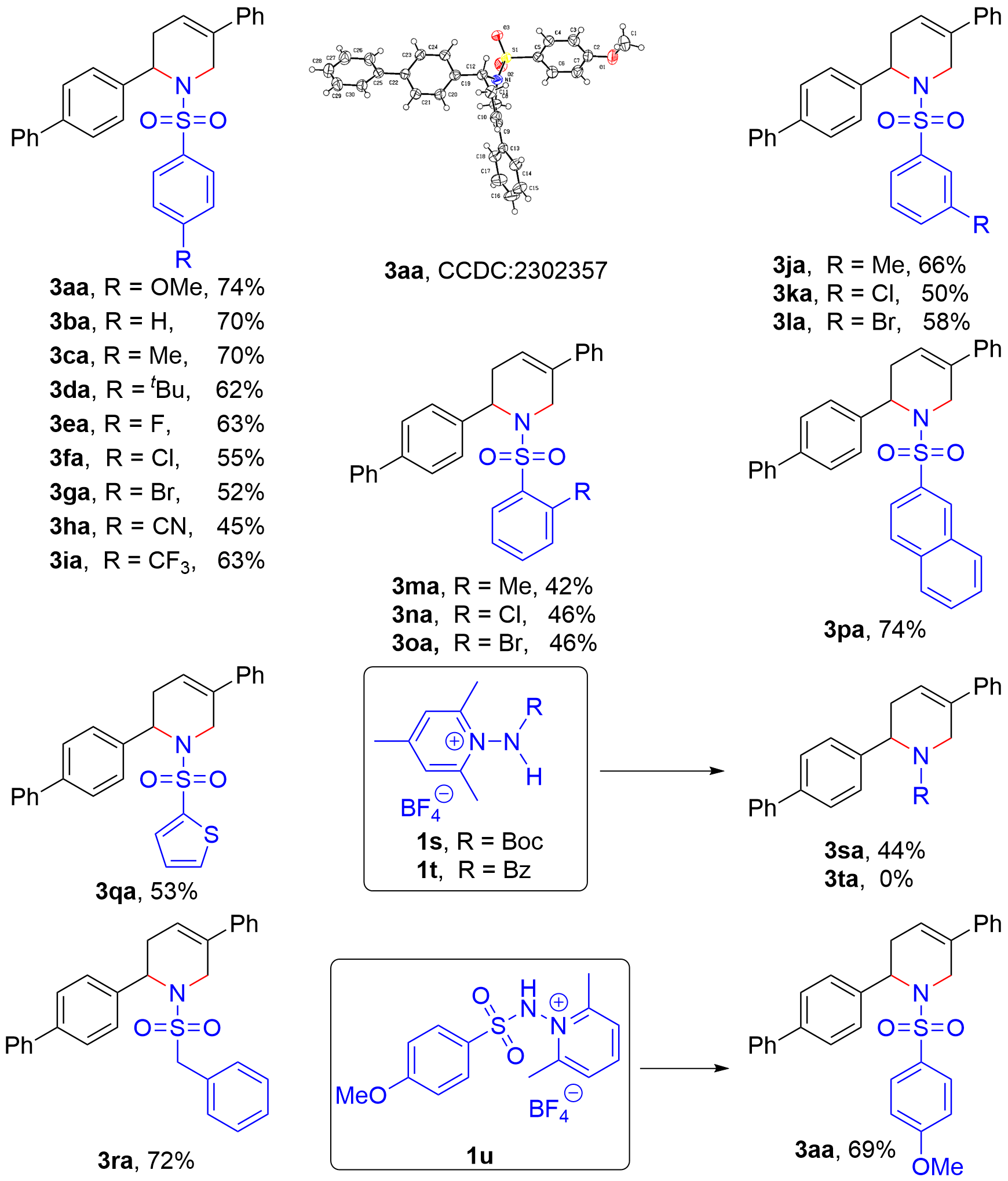 CCDC 2302357 contains the supplementary crystallographic data of product 3aa and it can be downloaded for free (https://www.ccdc.cam.ac.uk†)