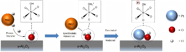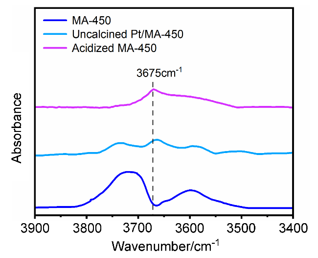 表3 载体MA-T和MA-A的比表面积、孔体积和孔径Table 3 Specific surface areas, pore volumes, and pore sizes for supports MA-T and Pt/MA-A |