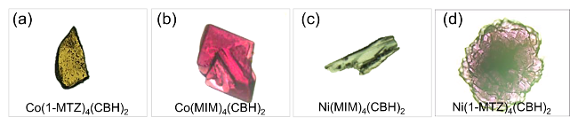 | compounds | Co(1-MTZ)4(CBH)2 | Co(MIM)4(CBH)2 | Ni(MIM)4(CBH)2 | Ni(1-MTZ)4(CBH)2 |
