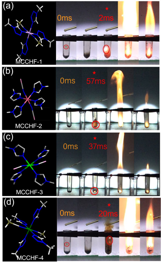 | 生成焓(ΔHf) | MCCHF-1: 1051.95 kJ•mol−1 MCCHF-4: 125.27 kJ•mol−1 | 氧弹量热仪实测 |