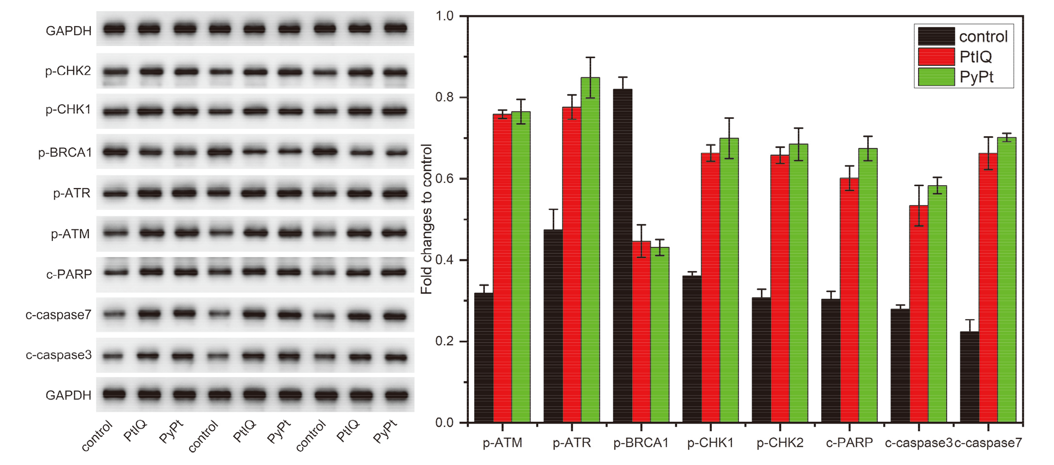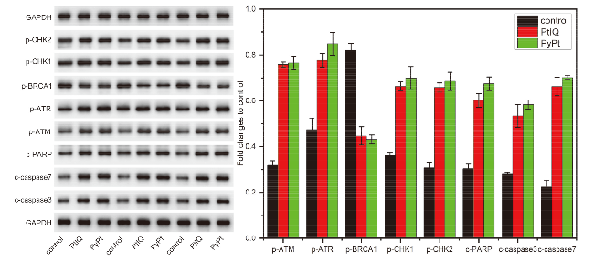 Figure 9 Complexes PyPt (0.05 μmol/L) and PtIQ (9.0 μmol/L) triggered DNA damage and apoptosis response pathways in MDA-MB-231 cells after treatment for 48 h