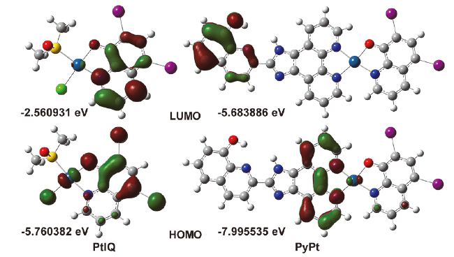 图2 通过DFT计算PyPt和PtIQ的HOMO-LUMO之间的能隙