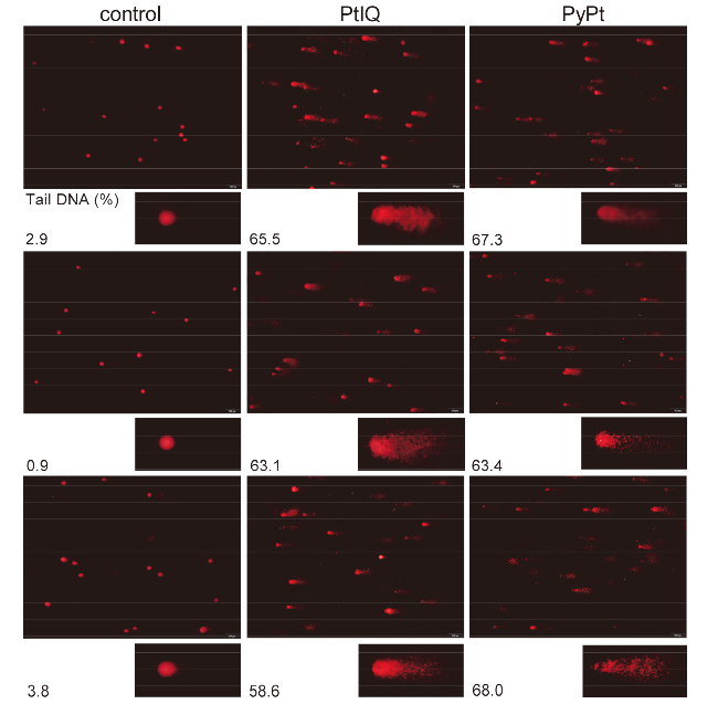 Figure 5 Induction of DNA damage in MDA-MB-231 cells by PyPt (0.05 μmol/L) and PtIQ (9.0 μmol/L) for 48 h using neutral comet assay