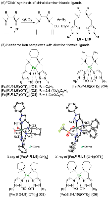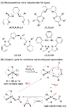 基于点击化学的模块化优势和高效性, 本研究成功合成了一系列手性二胺-三唑四齿氮配体及其衍生的非血红素铁配合物. 以双氧水为氧化剂, 这些铁配合物在催化缺电子烯烃的不对称环氧化反应中表现出优异的催化活性和对映选择性.