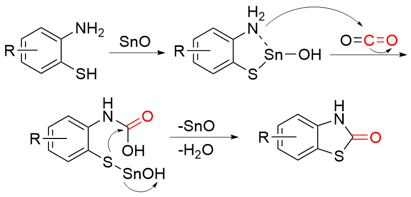 苯并噻唑-2-酮是一种含有苯环和硫氮杂环的稠环化合物, 具有广泛的生物活性, 在农业及医药领域有着较高的应用价值, 其合成方法的研究也备受关注. 本综述通过调研文献发现2-氨基苯硫酚、2-取代苯并噻唑以及邻卤苯胺是合成苯并噻唑-2-酮的主要原料, 并系统总结了这三种原料合成苯并噻唑-2-酮的方法、路线及其反应机理, 为该类化合物的合成提供了参考依据. 此外, 本综述还探讨了羰基化试剂的结构特点、反应活性以及原子经济性, 为羰基化试剂在有机合成中的应用提供了理论依据.