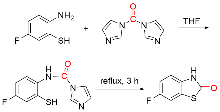 | | 65.99 | Gas | The acyl fluoride is attacked by an amine nucleophile, forming carbamyl fluoride that subsequently engage in further reactions | 42.4% |