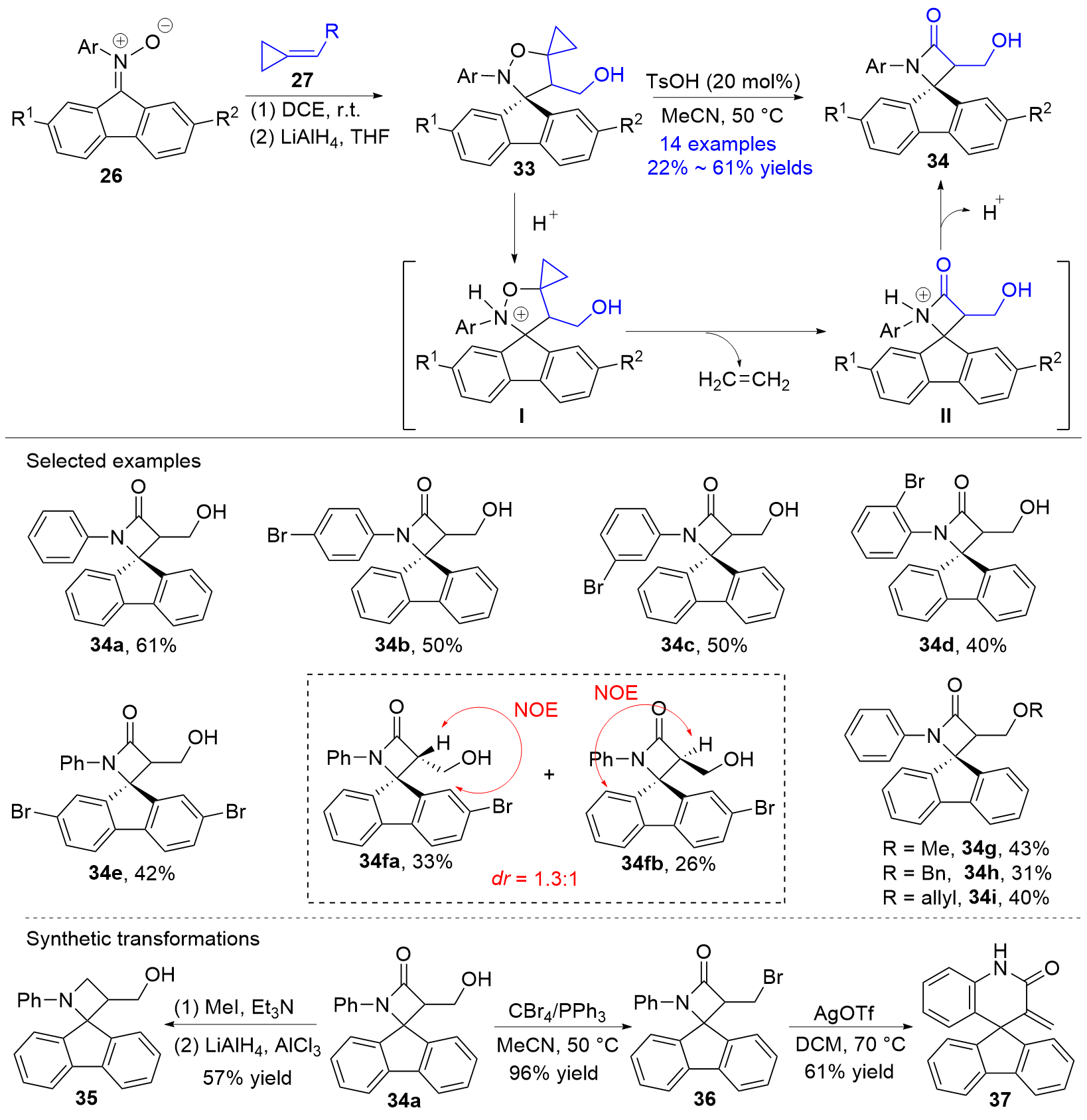 螺芴基骨架广泛存在于生物活性分子和各种功能材料中, 其独特的刚性和稳定性有助于提高器件的发光效率、热稳定性以及化学稳定性等, 因而成为药物分子与光电材料设计中备受关注的核心结构之一. 然而, 受其刚性与空间位阻影响, 该类化合物的高效合成仍具挑战性. 重点综述了近十年合成螺芴基化合物的新策略和新方法, 包括环化反应、环加成反应和C—H活化等, 为其他相关结构的高效制备提供参考.