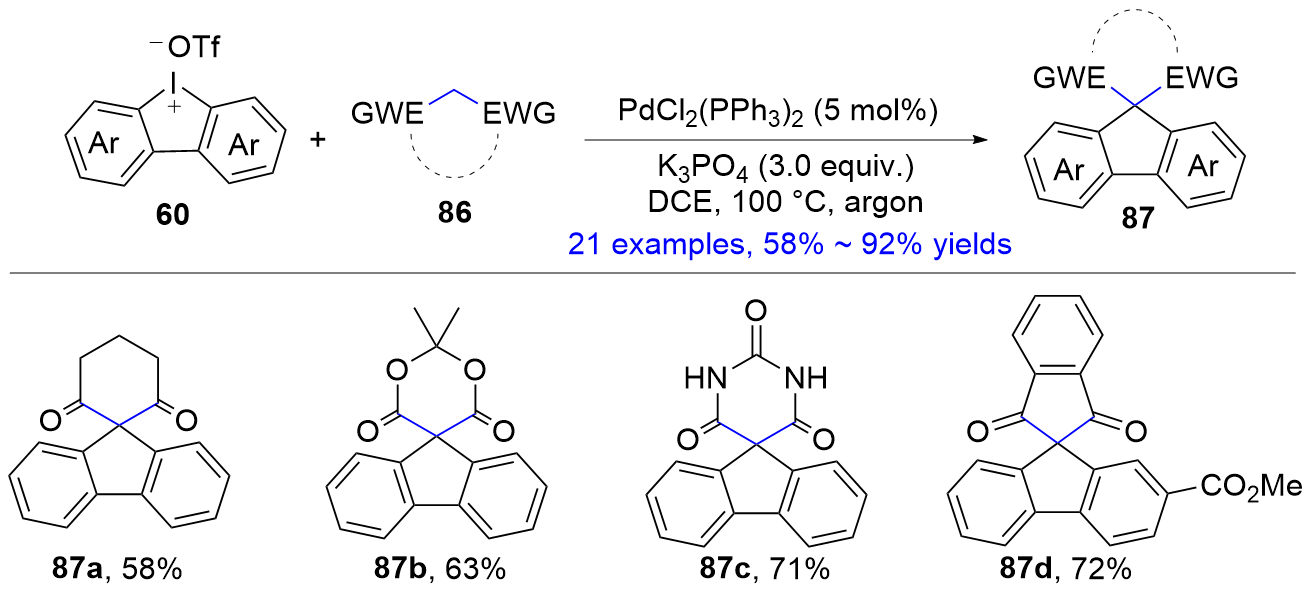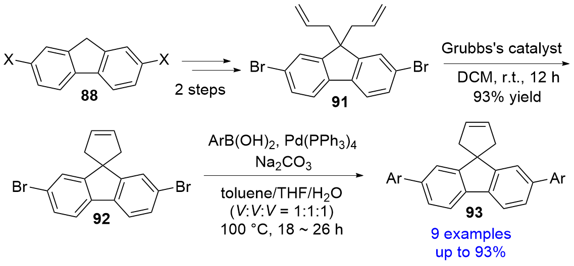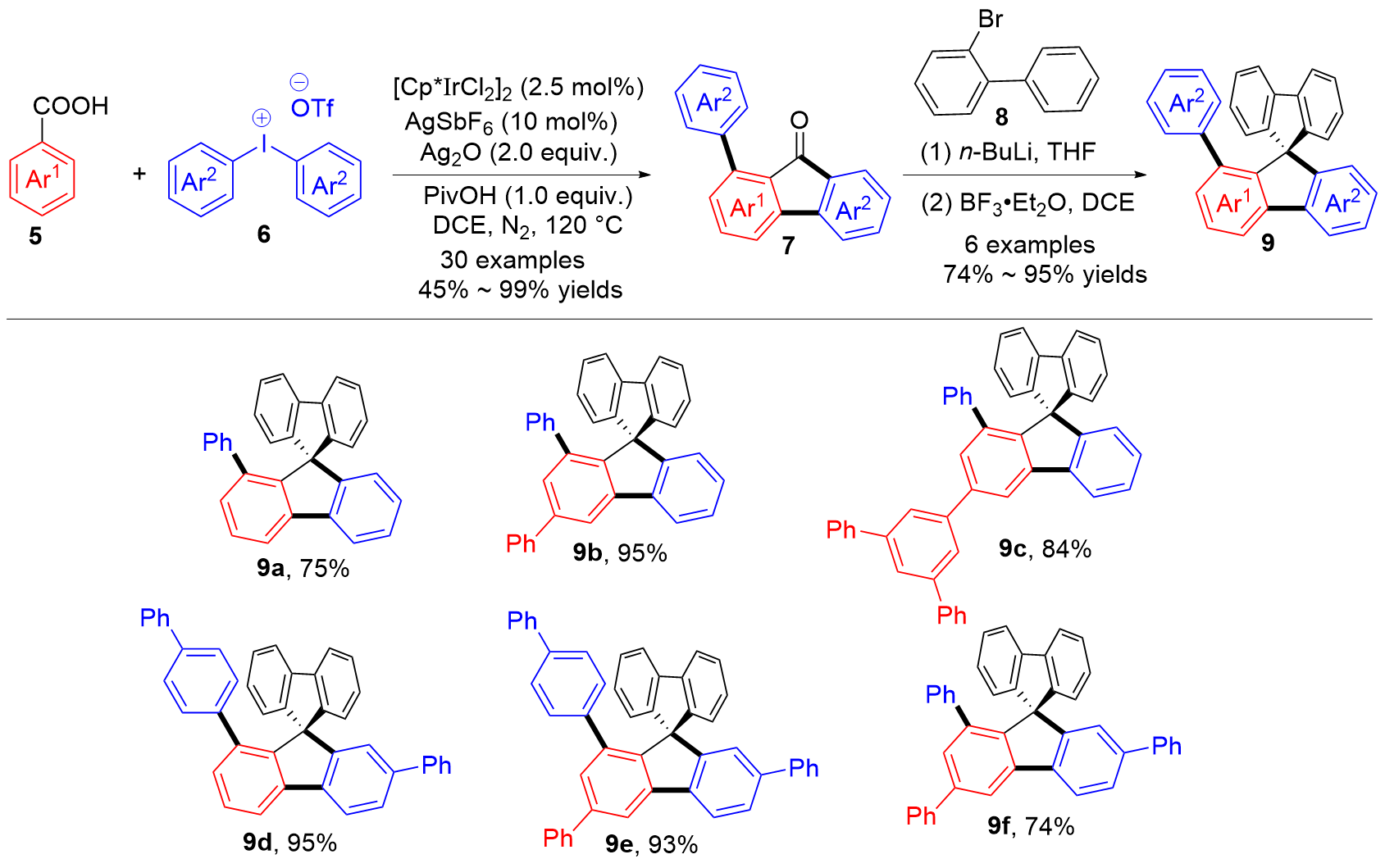 Cui Wei, Jinqiu Liu, Can Deng, Ning Zou, Wenjun Zhou. Recent Advances on the Synthesis of Spirofluorene-Based Compounds[J]. Chinese Journal of Organic Chemistry, 2026, 46(3): 817-839.