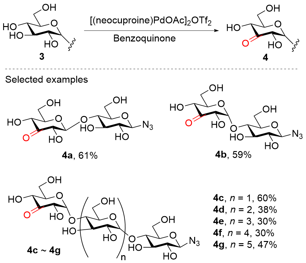 糖类作为自然界最丰富的生物分子之一, 在生物活性分子合成、药物开发及材料科学等领域具有重要作用. 糖羟基的选择性氧化是合成糖衍生物及实现官能团转化的关键策略之一. 然而, 糖分子固有的多羟基结构及其羟基间反应活性相近的特性, 使得其选择性修饰长期面临巨大挑战. 传统方法依赖繁琐的保护-脱保护步骤, 导致合成路线冗长、效率低下. 近年来, 无保护糖分子的直接选择性催化氧化已成为新兴研究热点. 该策略显著简化了合成路线, 提高了原子经济性, 并降低了环境影响. 综述了无保护或少保护糖分子选择性催化氧化的研究进展, 重点评述了不同催化体系, 包括金属催化、光催化和电催化等在该领域的应用.