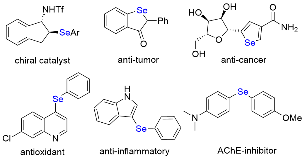 手性有机硒化合物广泛存在于活性生物分子、天然产物、药物分子和功能材料等领域中, 同时也是有机合成中重要的中间体和催化剂. 基于此类化合物的重要作用, 手性有机硒化合物的合成一直是有机化学方向热点研究领域之一. 近年来, 发展绿色经济的手性有机硒化合物合成方法得到了广泛关注. 主要综述了近十年基于不同催化体系下合成手性有机硒化合物的研究进展, 主要分为无金属催化、金属催化、光催化三种反应体系来归纳总结, 并对手性有机硒化合物合成的挑战和未来发展方向进行了探讨.