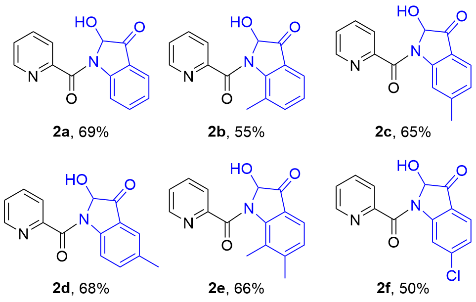 Key words: iodine, 2-hydroxy-indolin-3-ones, N-(2-acetylphenyl)picolinamide, intramolecular cyclization, metal-free