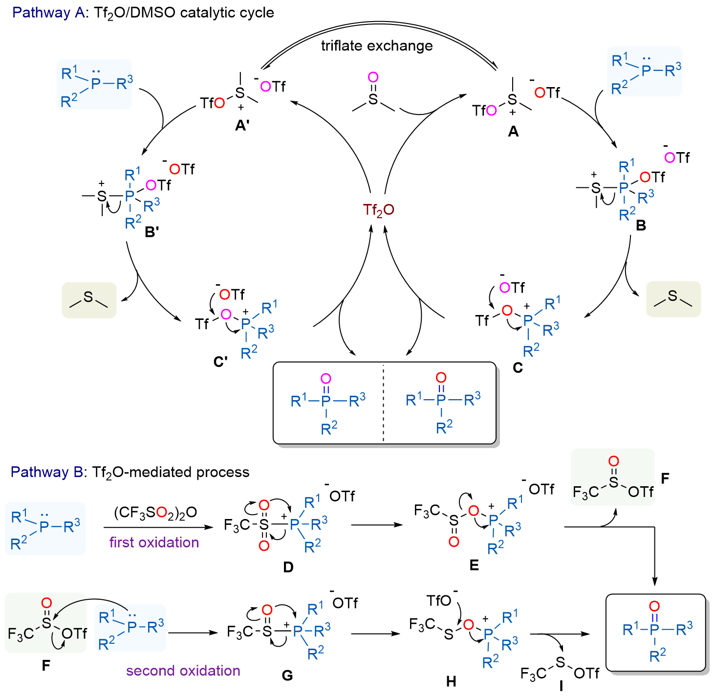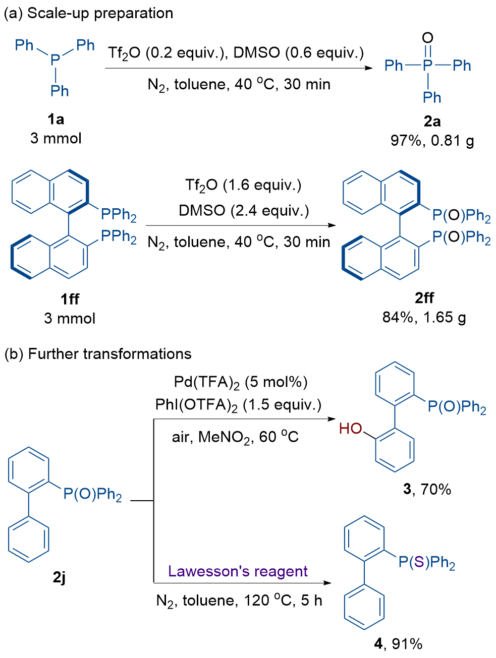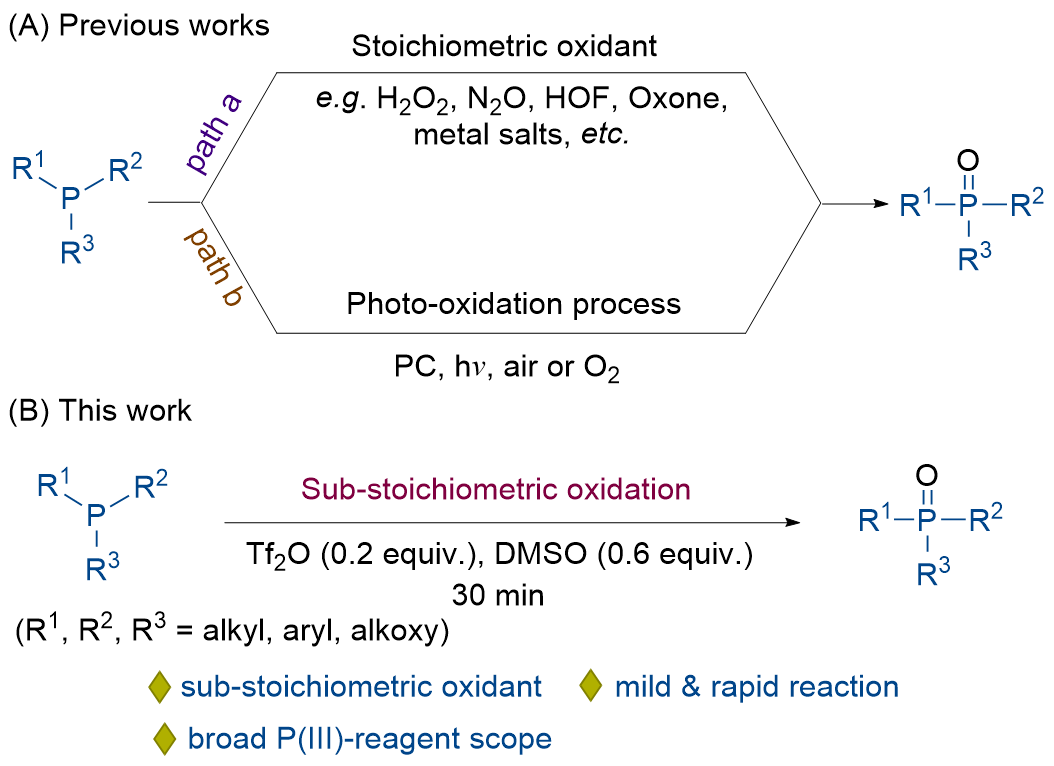 亚化学计量三氟甲烷磺酸酐/二甲基亚砜协同促进的三价磷到三级磷氧化物的氧化转化