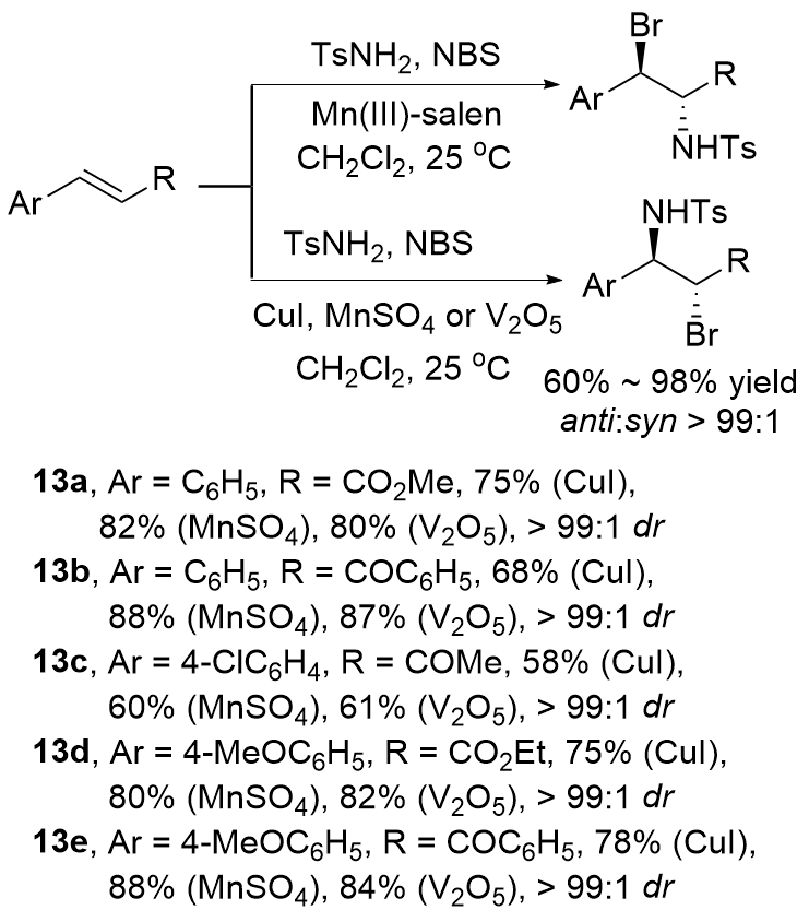 钟国, 白萌冉, 崔斌, 孙慧. 烯烃立体选择性卤胺化的研究进展[J]. 有机化学, 2025, 45(12): 4271-4289.