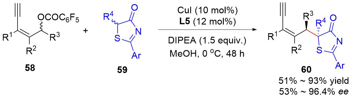 Mengdie Li, Zihan Wang, Taoyan Lin. Recent Progress in Copper-Catalyzed Remote Yne-Allylic Substitution Reaction[J]. Chinese Journal of Organic Chemistry, 2026, 46(2): 356-378.