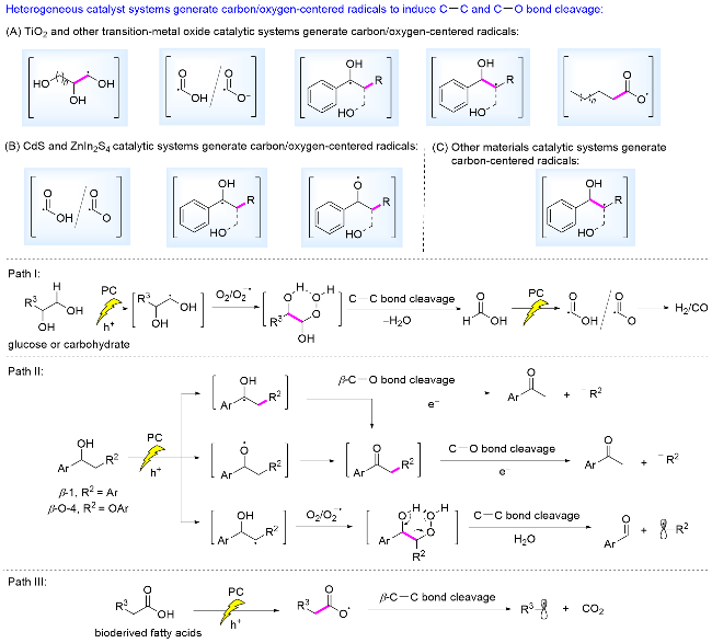 Key words: biomass; photocatalysis; radicals; C—C bond cleavage; C—O bond cleavage