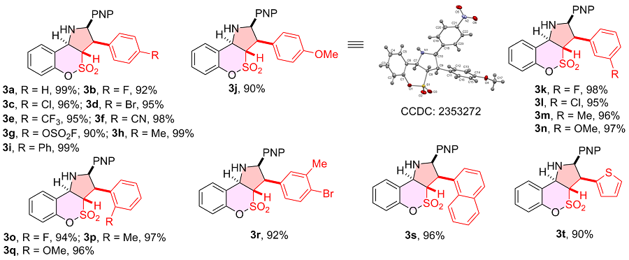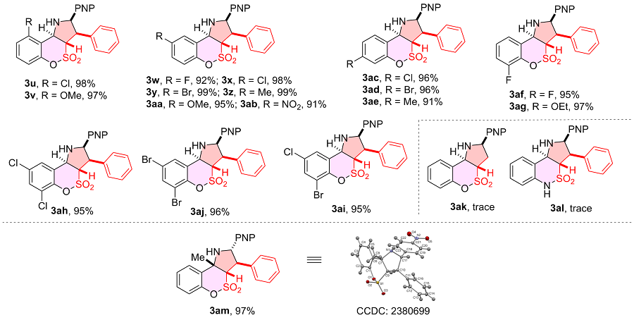 表3 2-取代乙烯基磺酰氟普适性研究aTable 3 Scope of 2-substituted vinylsulfonyl fluorides ![]() |