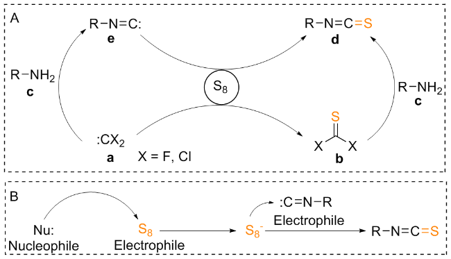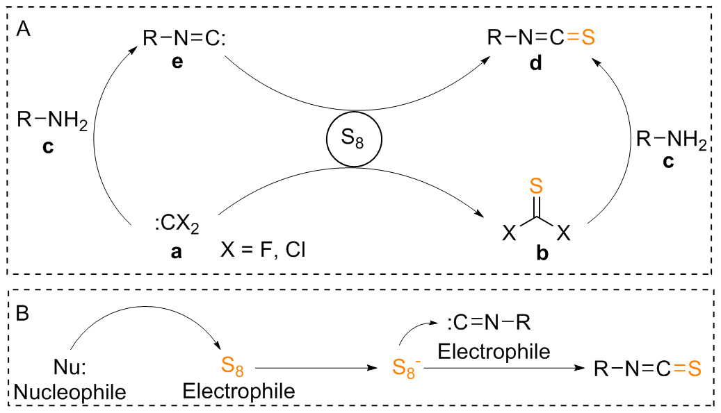 Scheme 11a). Notably, it was also claimed that adding sulphur to formaldimines produced ITCs. However, this technique is hardly ever employed nowadays. The idea that a switched mechanism also exists, involving a nucleophilic sulphur anion (S