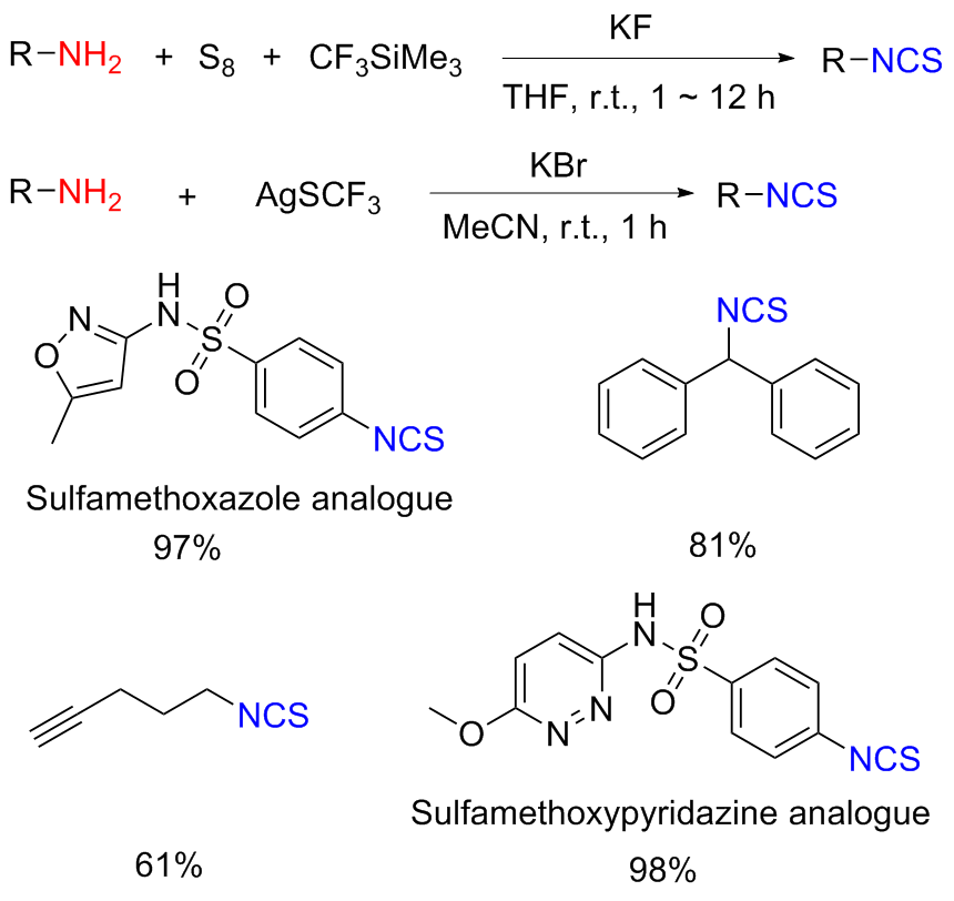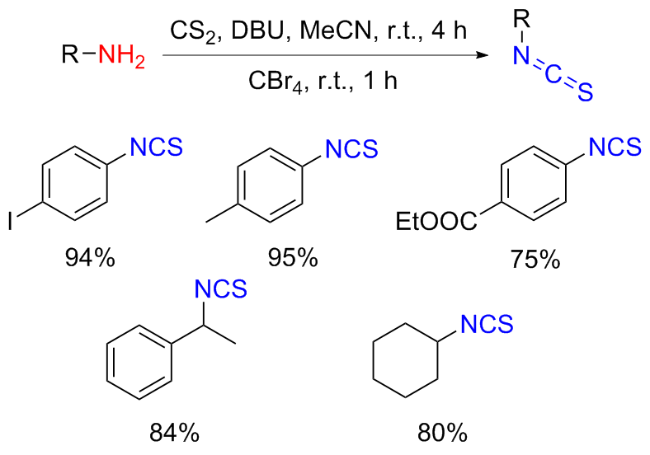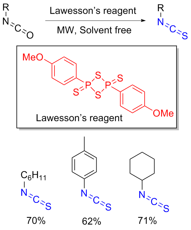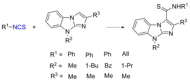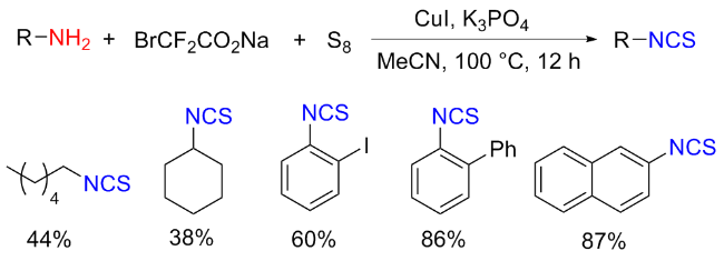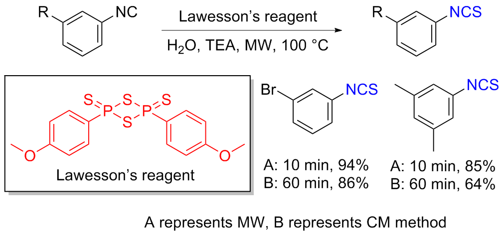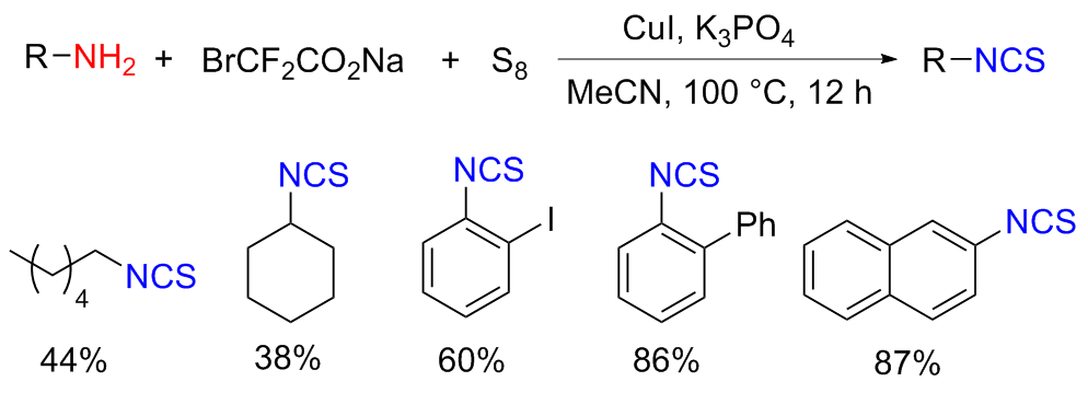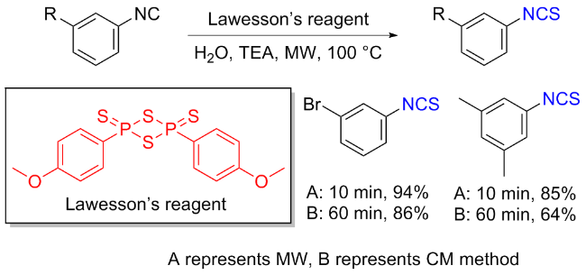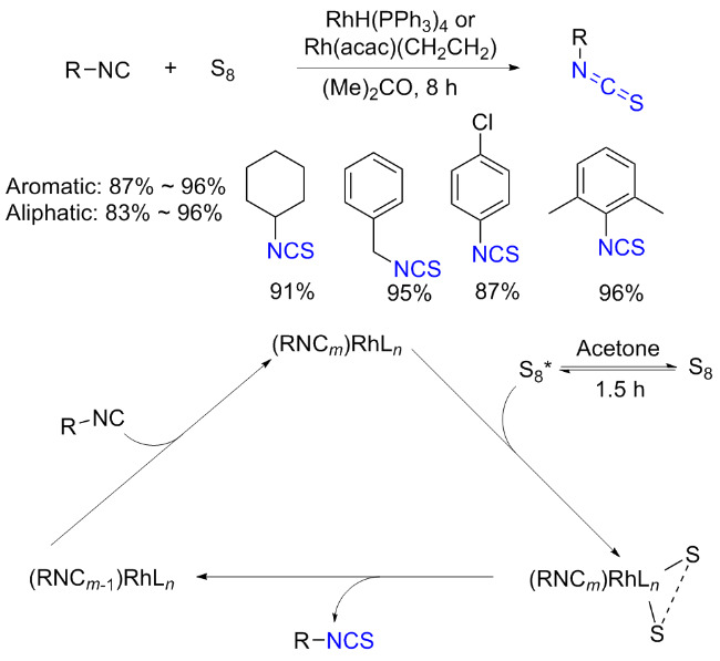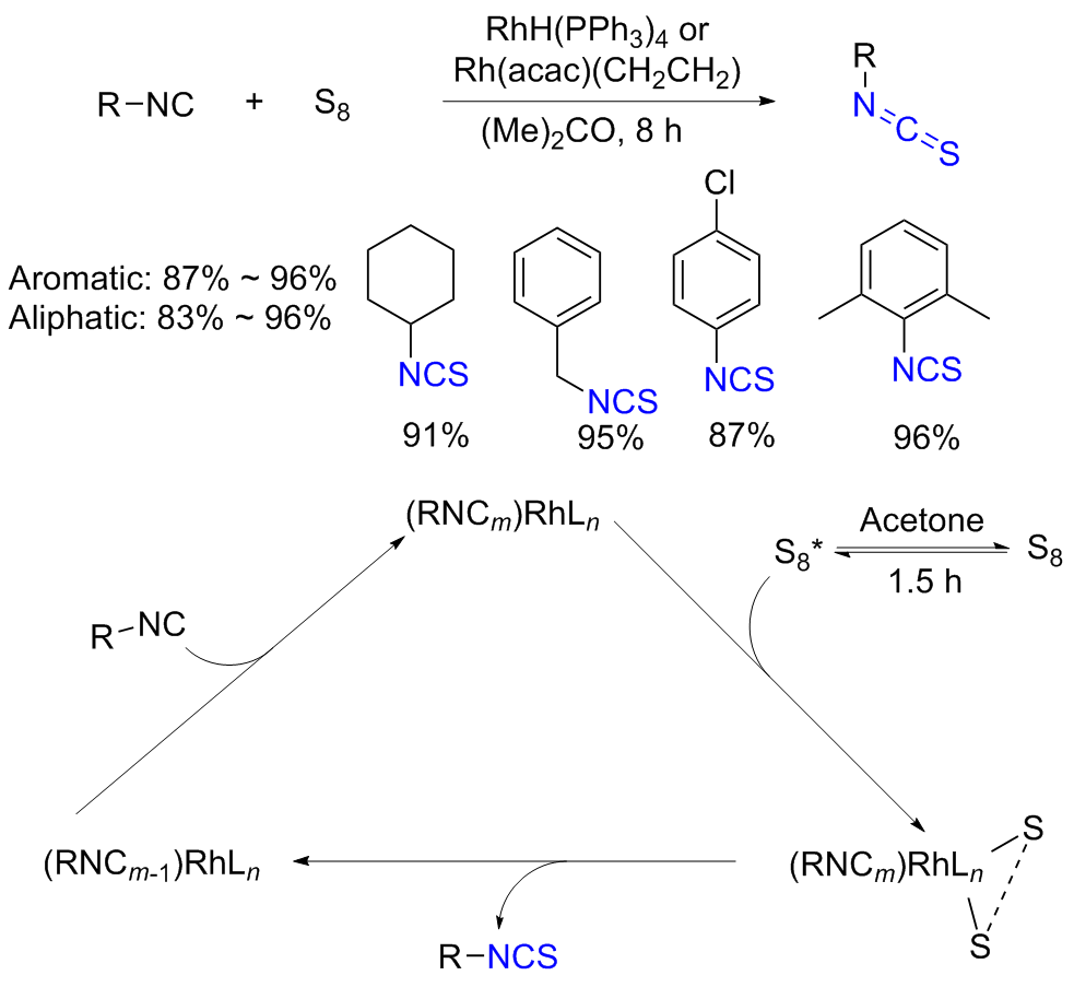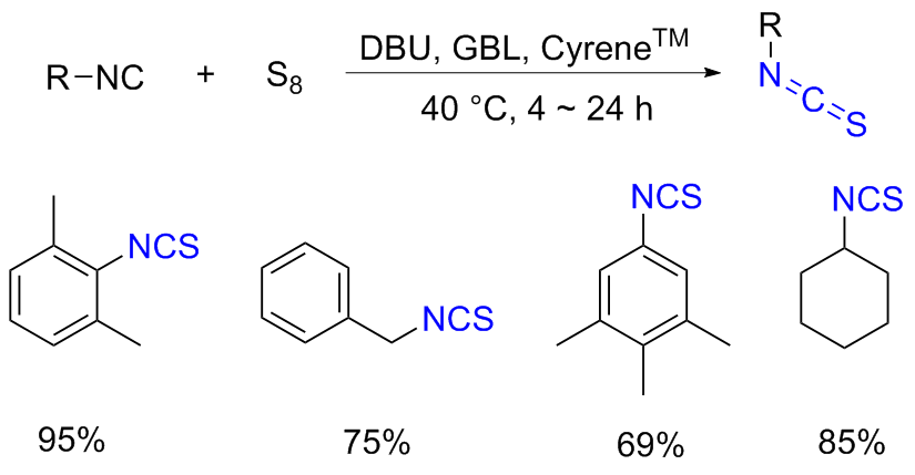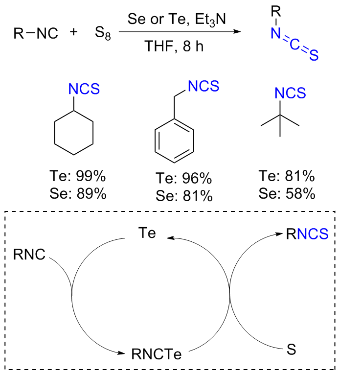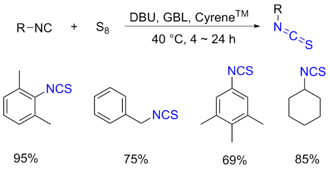 Scheme 11). Aromatic isocyanides react with sulfur to form isothiocyanates (ITCs) upon refluxing in benzene for 3 d with moderate yields obtained.