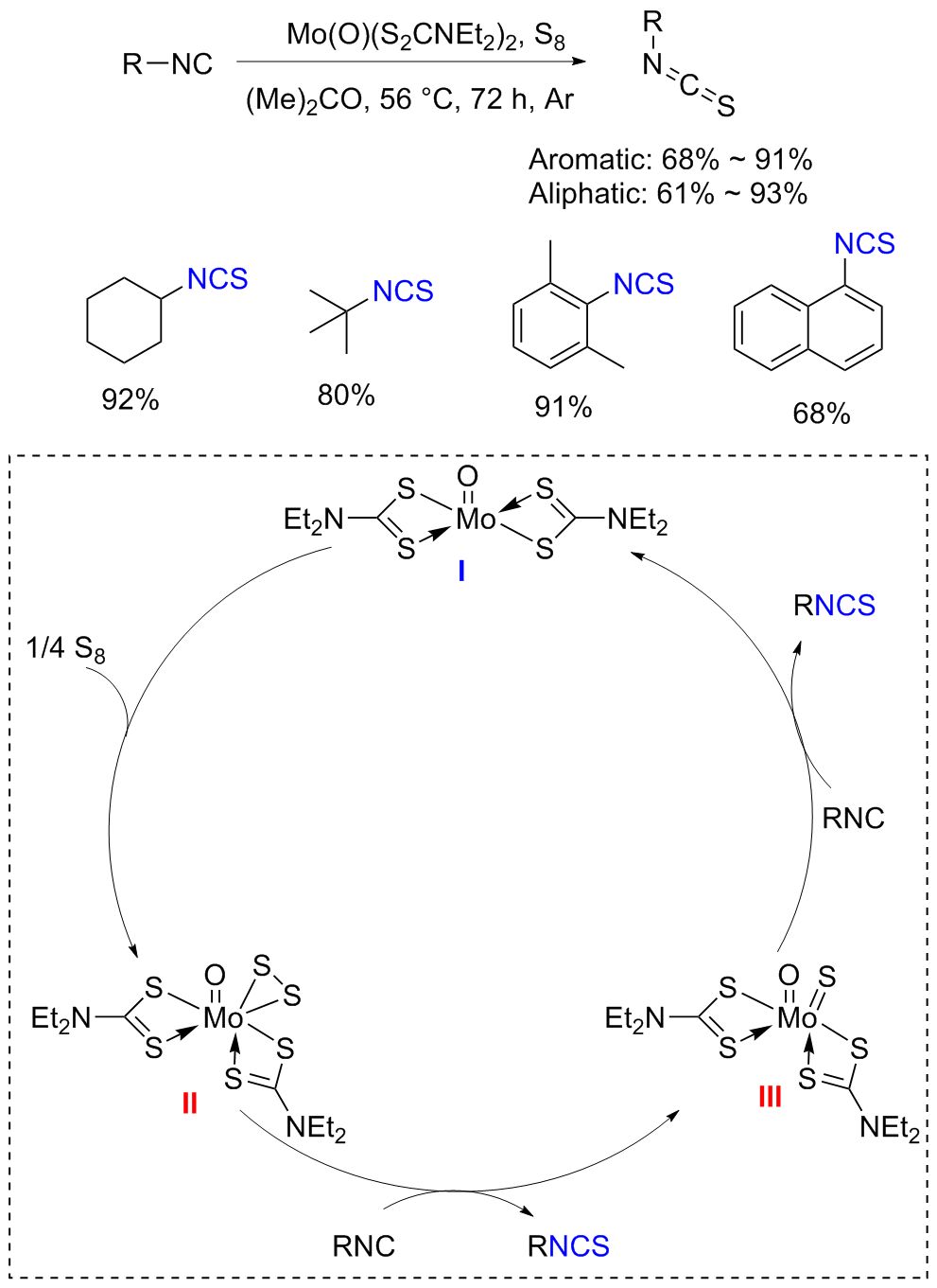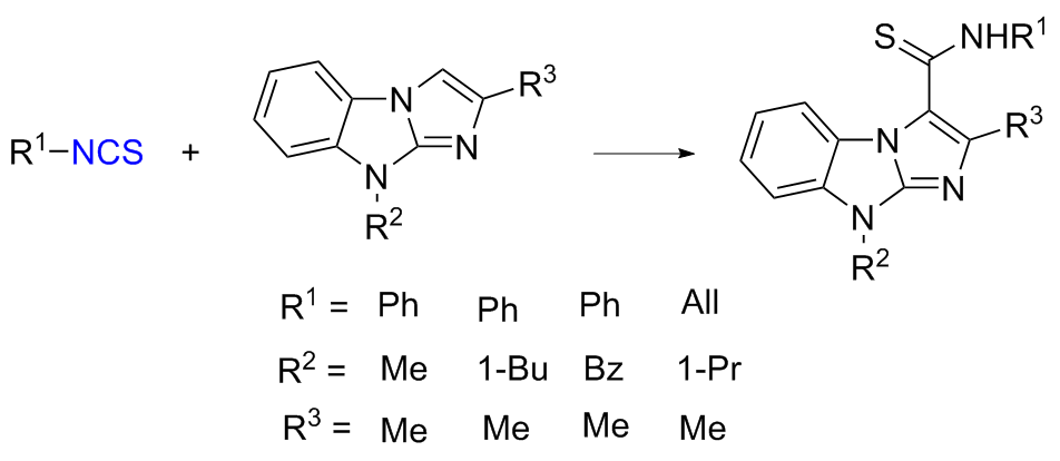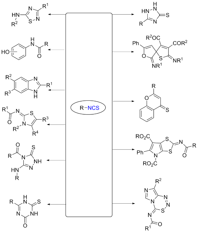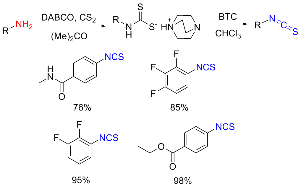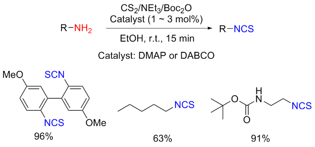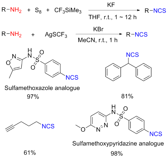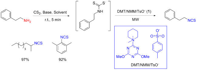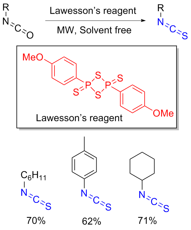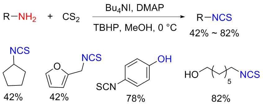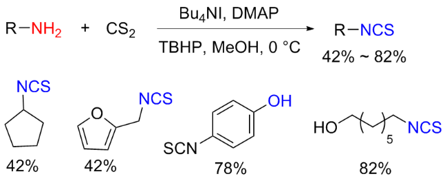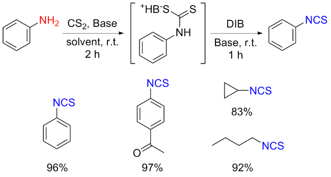 Scheme 11). Aromatic isocyanides react with sulfur to form isothiocyanates (ITCs) upon refluxing in benzene for 3 d with moderate yields obtained.