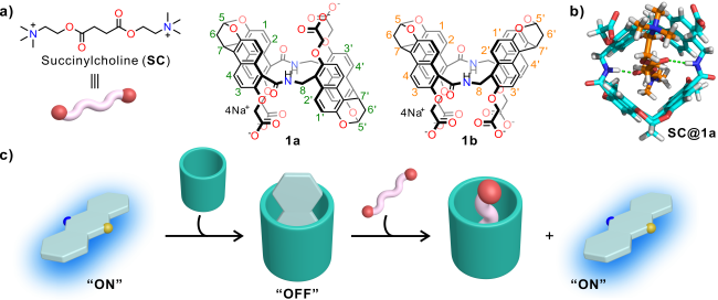 SC linear structure possesses relatively hydrophobic characteristics that complement the deep hydrophobic cavity of the amide naphthotube. Moreover, its ester bonds form complementary double hydrogen bonds with the amide groups present in the host cavity. Additionally, the water-soluble quaternary ammonium salts at two