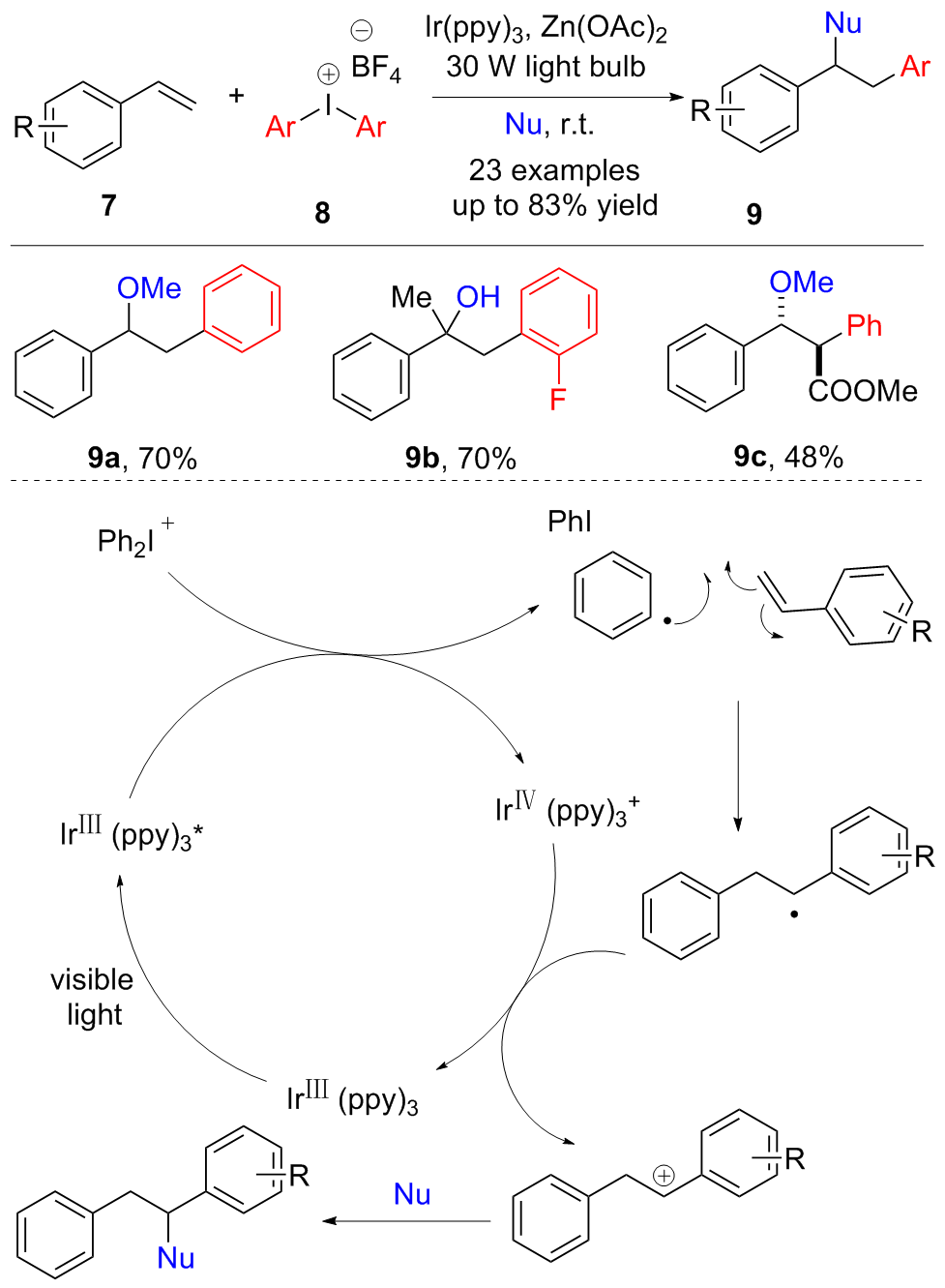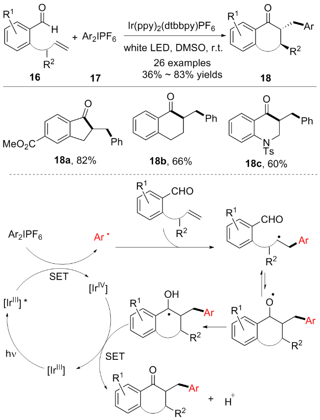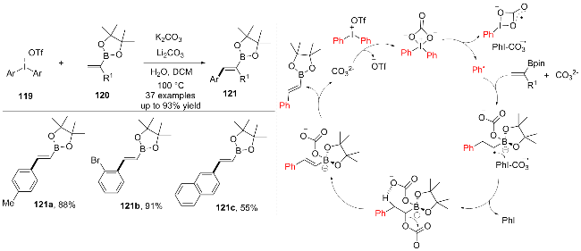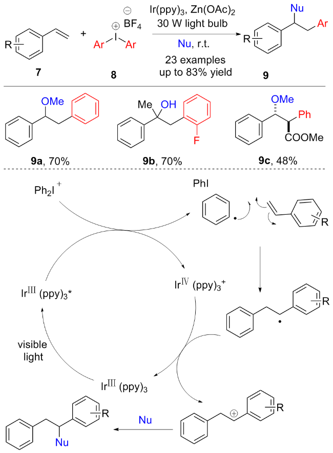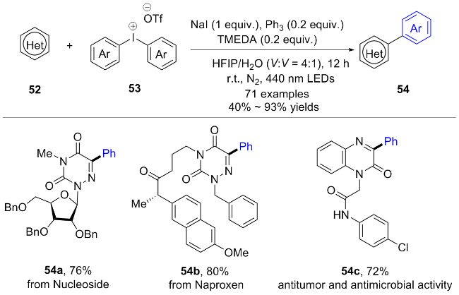 诸雨楠 , 矫伟康 , 韦雪白 , 陈春华 , 莫冬亮 . 二芳基碘盐参与的自由基芳基化反应研究进展[J]. 有机化学, 2025 , 45(10) : 3672 -3690 . DOI: 10.6023/cjoc202412026
