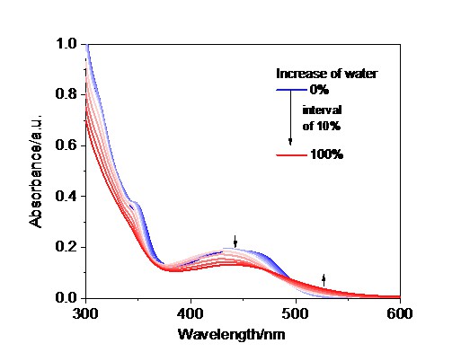 [22]采用不良溶剂调控的手段, 实现了不同构型铂(II)配合物的聚集, 观测到不同颜色的