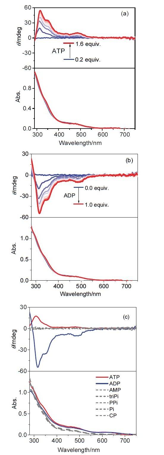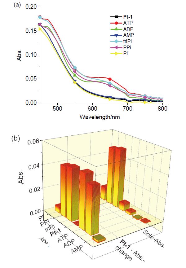 [27-32]: 通过分子探针与三个分子间存在不同的结合力, 在光谱中产生的不同信号进行区分. 但目前关于ATP、AMP等磷酸衍生物中ADP特异性分子探针的研究报道相对较少, 由于荧光探针具有成本较低、响应性好等优点成为新型物质分析鉴定的方法