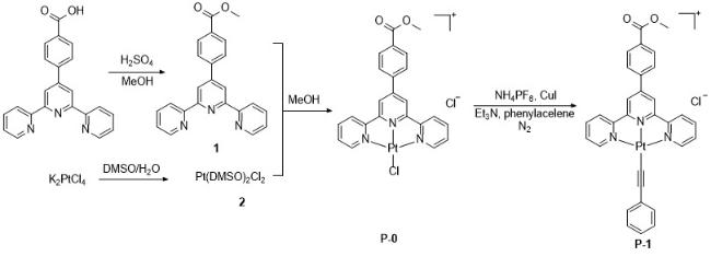 [9]. 除此之外, 当配合物之间处于较近的距离时, 还可能发生Pt…Pt到配体的跃迁方式, 用