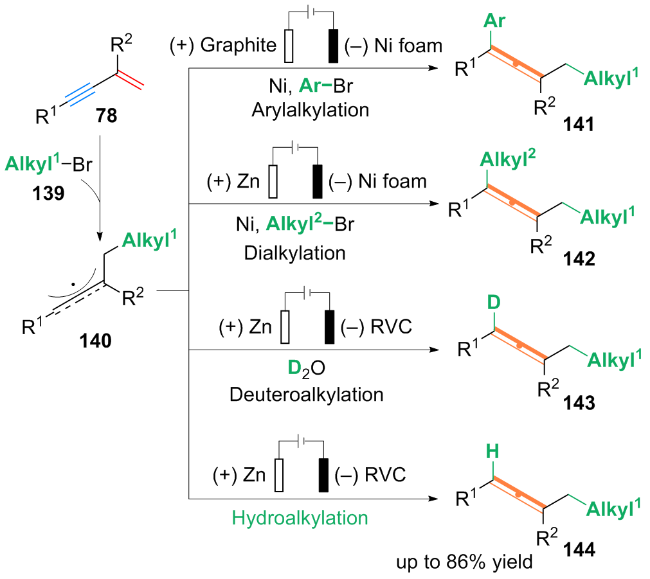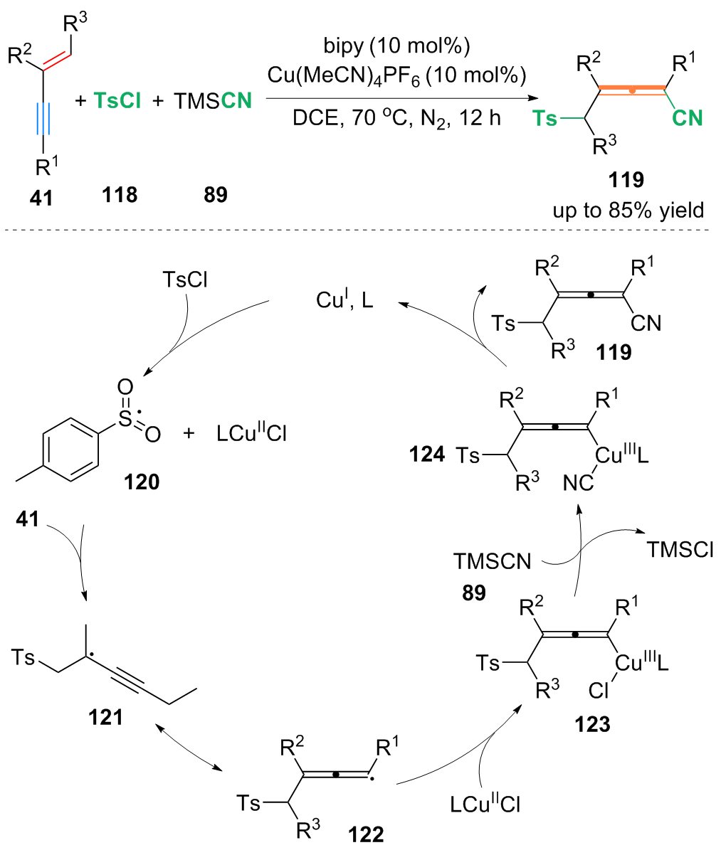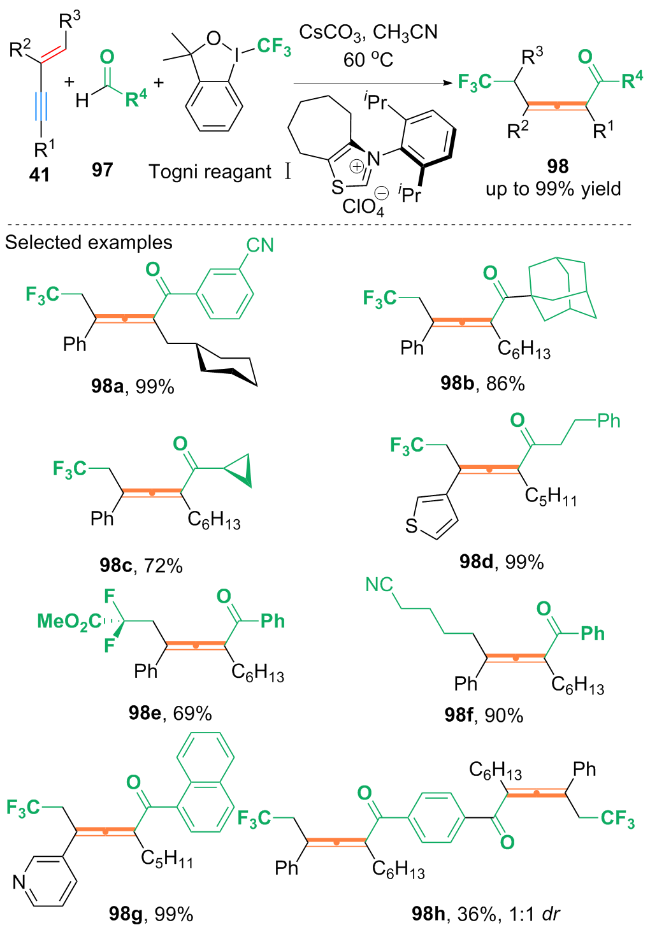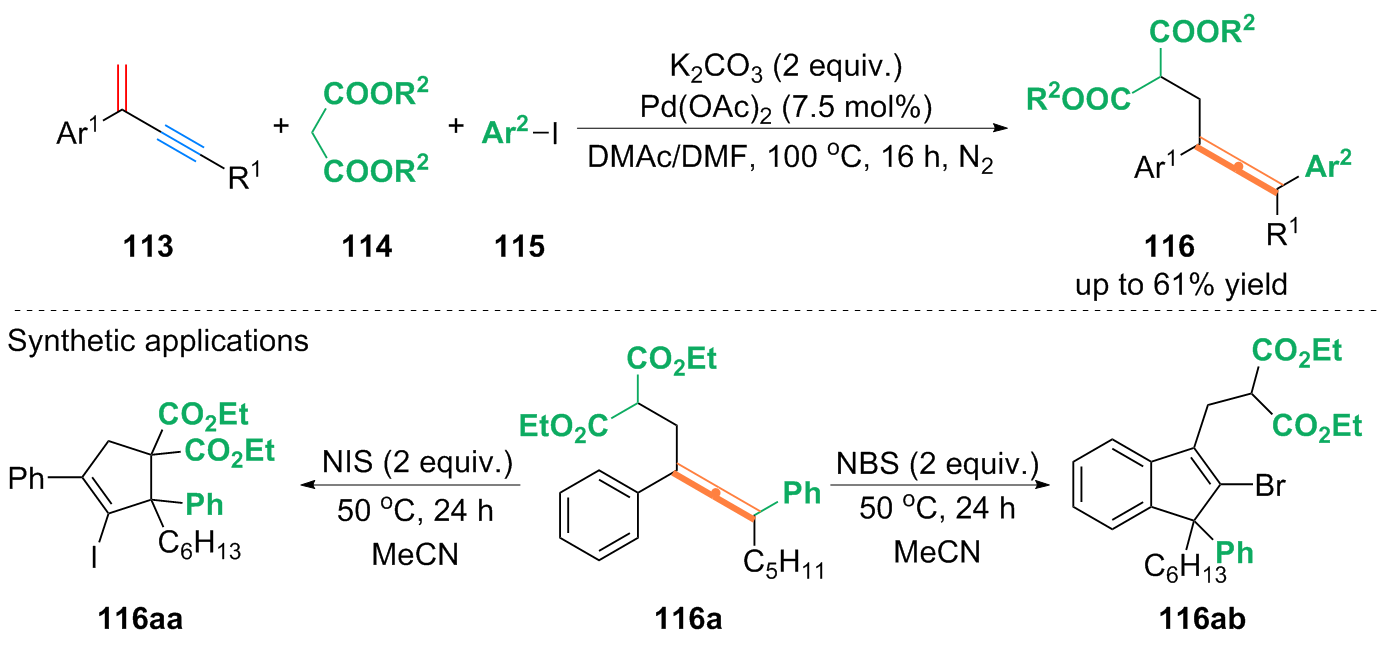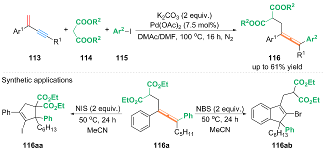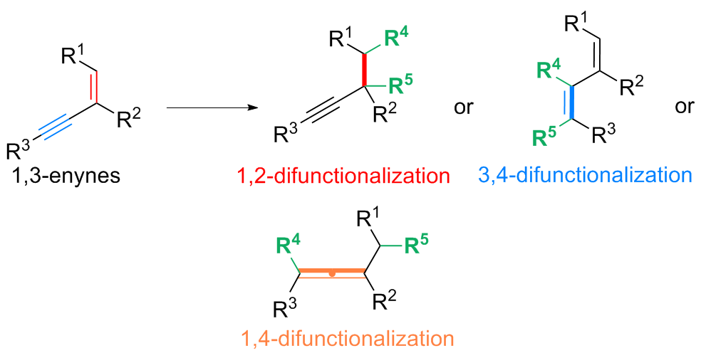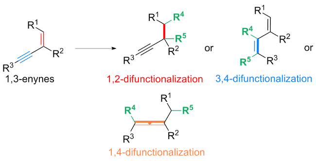 Key words: 1,3-enyne; difunctionalization; alkynyl compound; allene derivative; 1,3-diene