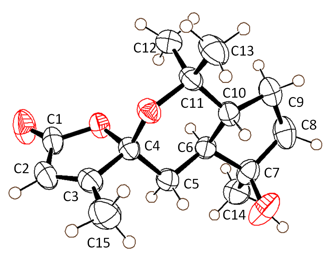 13C NMR and DEPT spectra exhibited 15 carbon resonances, including four methyl carbons at