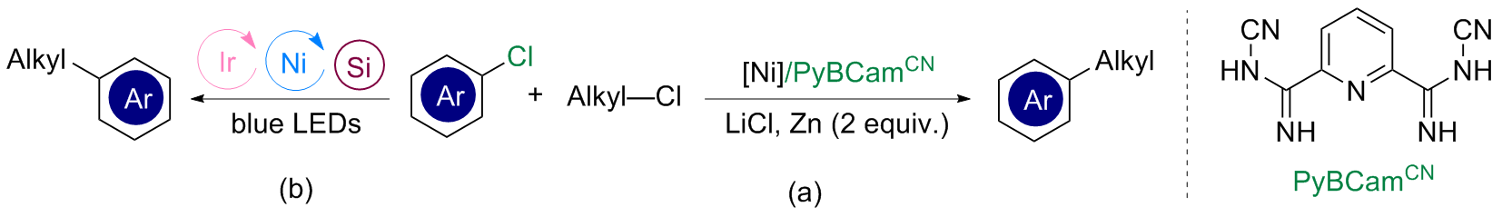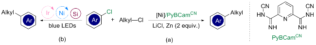 CN)来实现芳基氯和伯烷基氯的交叉偶联反应(