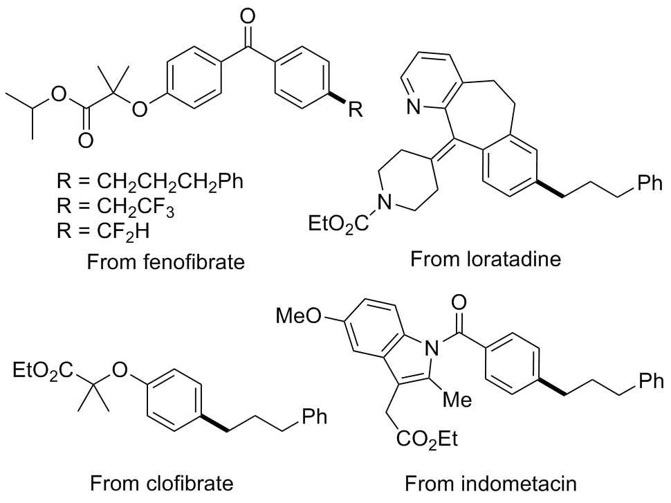2Cl)也可以顺利地与芳基氯偶联, 以良好的产率得到所需的产物. 此外, 在没有四丁基溴化铵(TBAB)的情况下, 使用旋转磁场可以很容易地使芳基溴与苄基氯偶联. 各种氟烷基氯化物也能以中等至良好的产率得到氟烷基化产物. 一些药物分子在该方法下也可以发生后修饰, 以56%~71%的收率合成相应的药物分子衍生物, 进一步突出了该方法在复杂药物制备中的有效性(