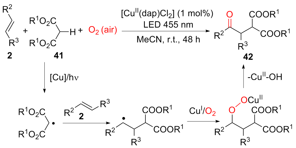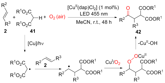 王雷雷 , 候亚楠 , 丁虹雨 , 吴娟娟 , 王祖利 , 魏伟 , 易东 . 可见光诱导分子氧参与烯烃氧化双官能化反应研究进展[J]. 有机化学, 2025 , 45(10) : 3495 -3516 . DOI: 10.6023/cjoc202506019