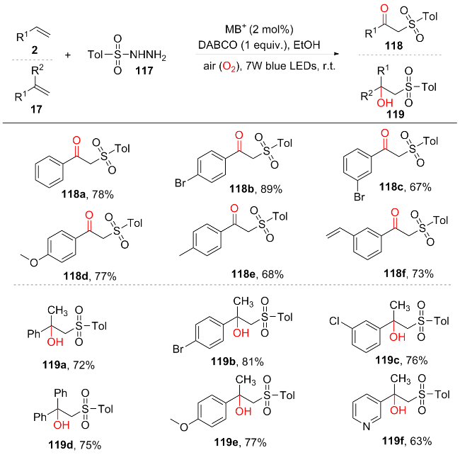 可见光诱导分子氧参与烯烃氧化双官能化反应研究进展