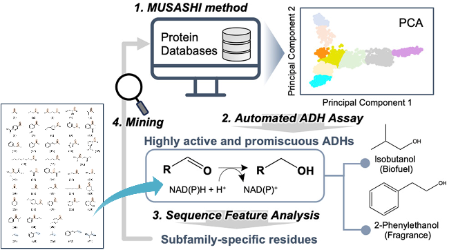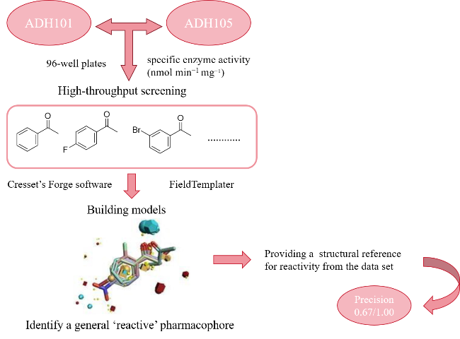 +依赖的醇脱氢酶催化醇(羰基)底物的不对称氧化(还原)反应遵循顺序反应机制. 首先, 辅因子与酶结合诱导蛋白由无序的状态形成适合底物分子结合的催化口袋, 成为全酶. 此后, 底物分子结合在活性口袋进一步诱导全酶形成合适的催化构象推动催化进行. 反应生成产物和氧化态或还原态的辅酶, 先释放产物, 最后释放辅酶