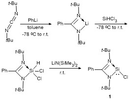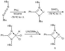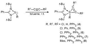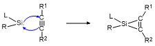 图式4 硅宾与取代炔烃反应生成硅杂环丙烯的可能作用机理Scheme 4 Proposed interaction mechanism of the silylene and substituted alkyne to silacyclopropene |