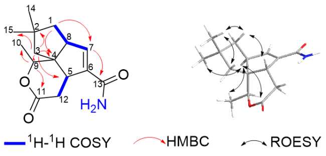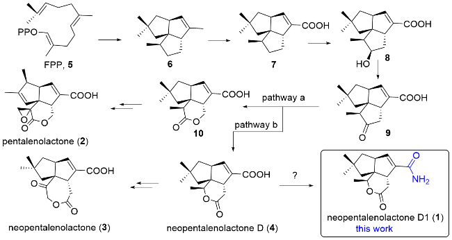 1 was established as the amide derivative of neopentalenolactone D (