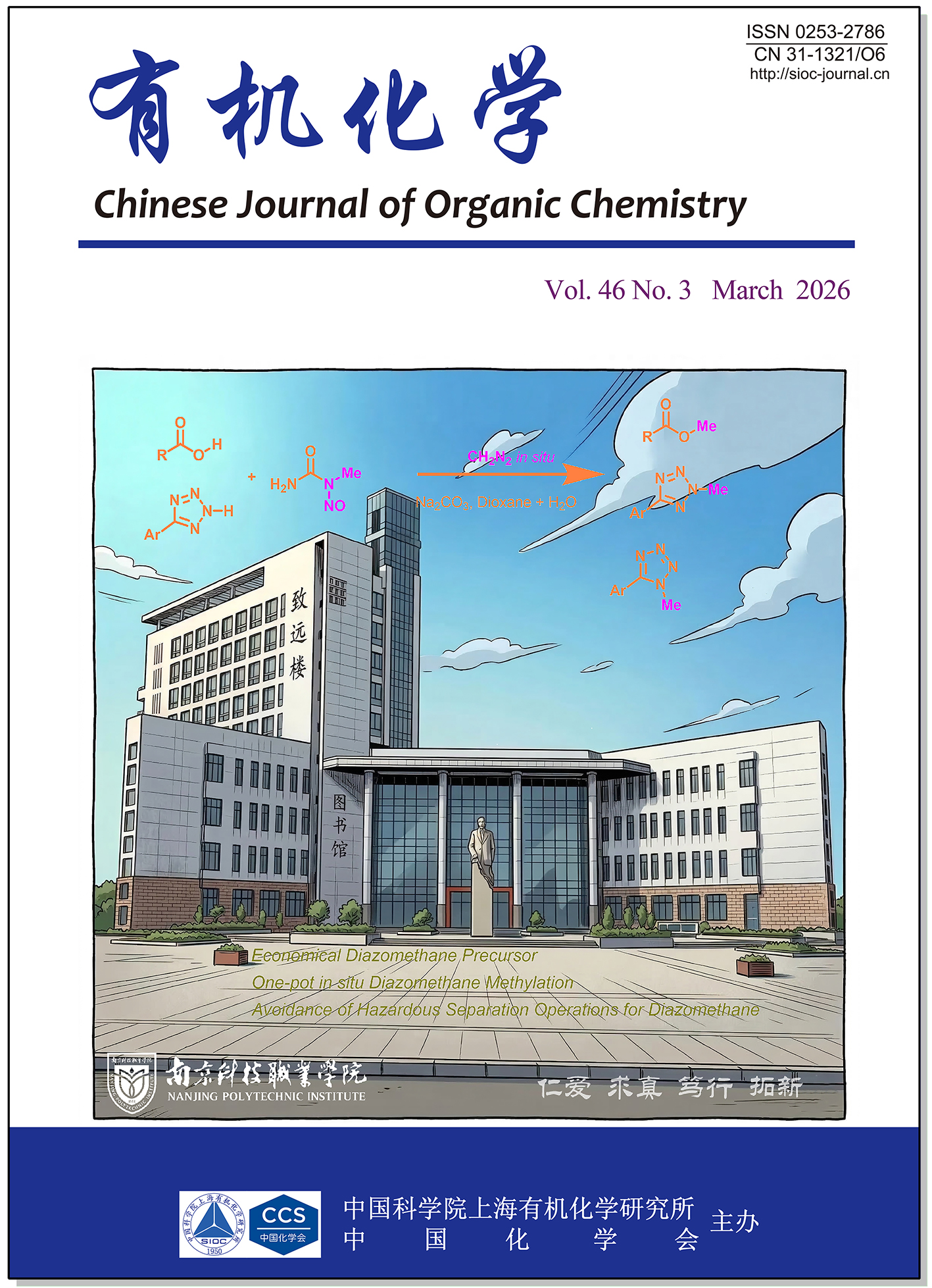 About the Cover:The one-pot chemoselective methylation of carboxylic acids using N-methyl-N-nitrosourea (MNU) as diazomethane precursor is reported by Liu, Sun, Chu and coworkers on page 907. By means of in situ generating and consuming diazomethane, the efficient methylation of carboxylic acids has been realized via Na2CO3 promotion in dioxane/H2O system, developing a safe and practical strategy for carboxylic acid methylation and phenyltetrazole N-methylation in pharmaceutical synthesis.