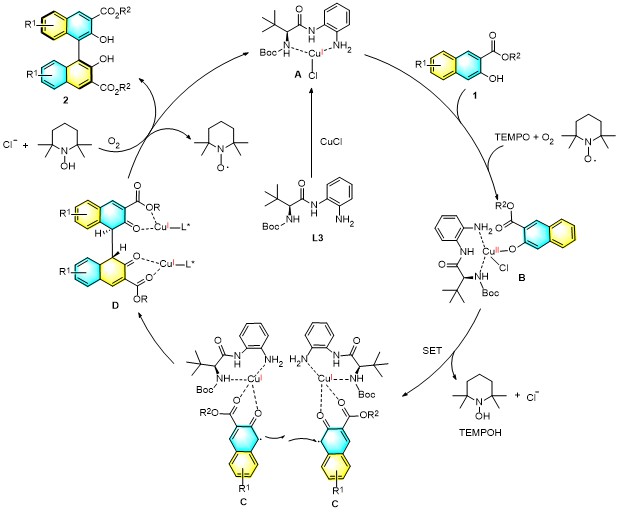 Key words: chiral amide ligand, copper catalyst, oxidative coupling, 3-hydroxy-2-naphthoate, 1,1'-bi-2-naphthol (BINOL)