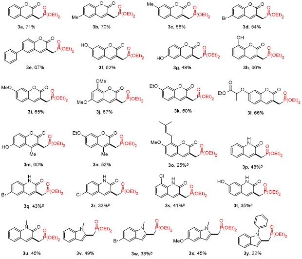 Liang Jiarui, Li Jinlan, Jiang Yun, Yao Qiuli, Xu Yingshu, Wang Anjun. Visible-Light-Driven Halogen-Bond-Induced Direct Coupling of Diethyl α-Iodomethylphosphonates with Coumarins/Quinolinones[J]. Chinese Journal of Organic Chemistry, 2026, 46(1): 135-145.