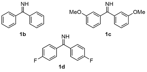 N-(Pent-4-en-1-yl)-1,1-bis(3-(trifluoromethyl)phenyl)-methanimine (3p): 23.9 mg, 31% yield, colorless oil. 1H NMR (600 MHz, Chloroform-d) δ: 7.95 (s, 1H), 7.74 (d, J=7.9 Hz, 1H), 7.68~7.61 (m, 3H), 7.46 (t, J=7.8 Hz, 1H), 7.42 (s, 1H), 7.36 (d, J=7.6 Hz, 1H), 5.88~5.69 (m, 1H), 5.25~4.62 (m, 2H), 3.37 (t, J=6.9 Hz, 2H), 2.12 (q, J=6.7 Hz, 2H), 1.85~1.77 (m, 2H); 13C NMR (151 MHz, Chloroform-d) δ: 164.9, 140.0, 138.2, 136.8, 131.6, 131.4 (q, J=32.6 Hz), 131.2, 130.9 (q, J=32.5 Hz), 129.4, 128.7, 126.7 (q, J=3.8 Hz), 125.7 (q, J=3.8 Hz), 124.7 (q, J=4.2 Hz), 124.5 (q, J=4.0 Hz), 124.0 (q, J=272.5 Hz), 123.7 (q, J=253.8 Hz), 114.8, 53.4, 31.5, 30.2; 19F NMR (564 MHz, Chloroform-d) δ: -62.7, -62.7. HRMS (ESI) calcd for C20H18F6N [M+H]+ 386.1338, found 386.1338.