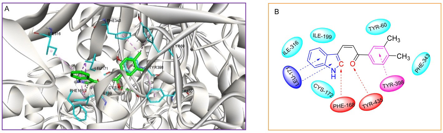 (E)-1-(3,4-二甲基苯基)-3-(1H-吲哚-3-基)丙-2-烯-1-酮(1c): HPLC/Purity: 97.31% (tR=10.642 min), yield 66.84%. m.p. 167.9~168.1 ℃; 1H NMR (300 MHz, DMSO-d6) δ: 11.94 (s, 1H, NH), 8.53 (s, 1H, NCH=C for indol ring), 8.10 (d, J=15.0 Hz, 1H, COCH=CH), 7.82~8.13 (m, 3H, C6H3), 7.70 (d, J=15.0 Hz, 1H, COCH=CH), 7.25~7.51 (m, 4H, C6H4), 2.37 (s, 3H, CH3), 2.33 (s, 3H, CH3); 13C NMR (75 MHz, DMSO-d6) δ: 188.98, 141.92, 138.93, 137.96, 137.15, 136.79, 133.33, 130.18, 129.54, 126.35, 125.68, 123.13, 121.58, 120.80, 116.02, 113.27, 112.90, 20.04, 19.88; HRMS calcd for C19H18NO [M+H]+ 276.1388, found 276.1390.